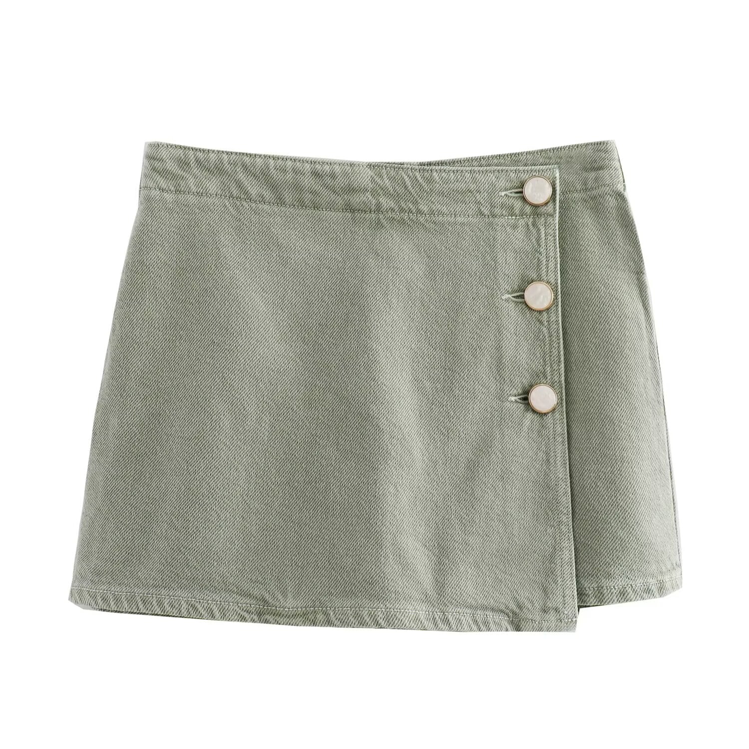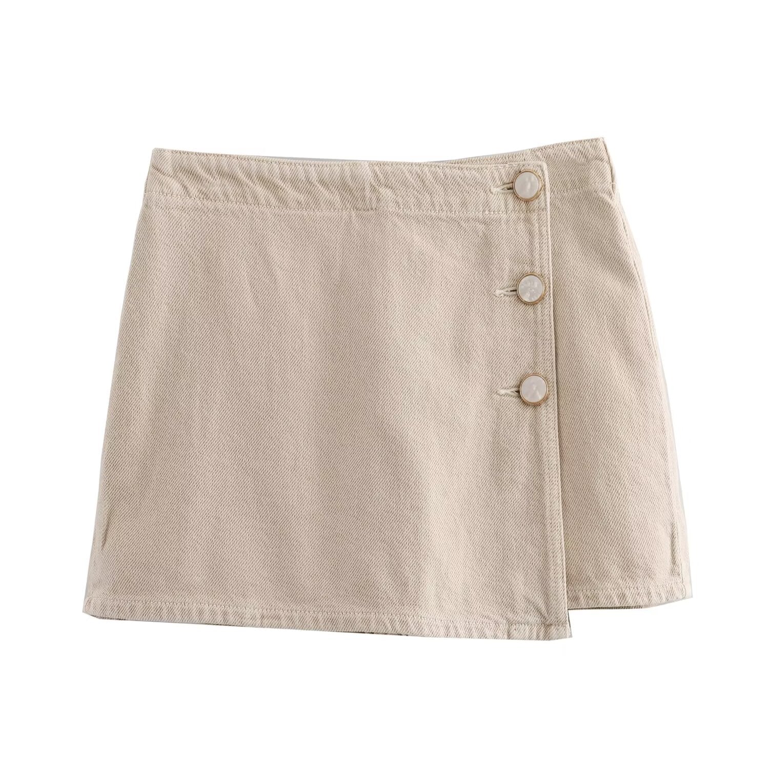Ladies' new fashion asymmetrical design slim single breasted denim shorts Skirts