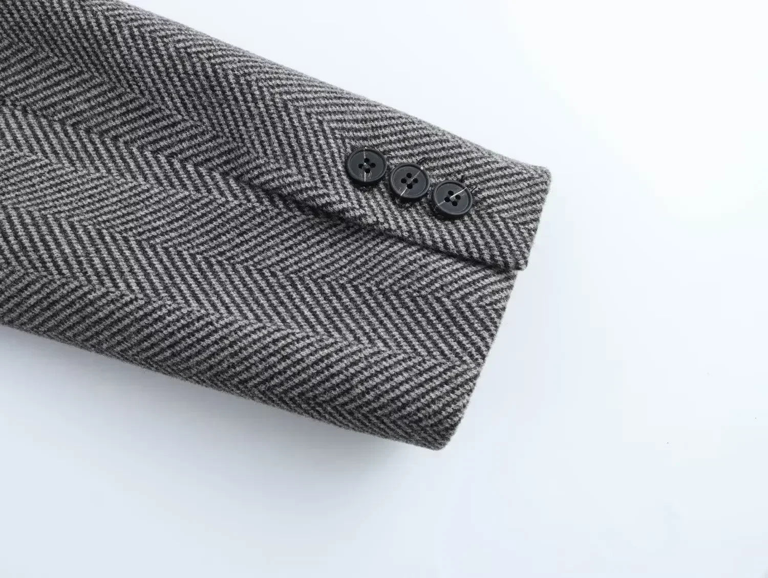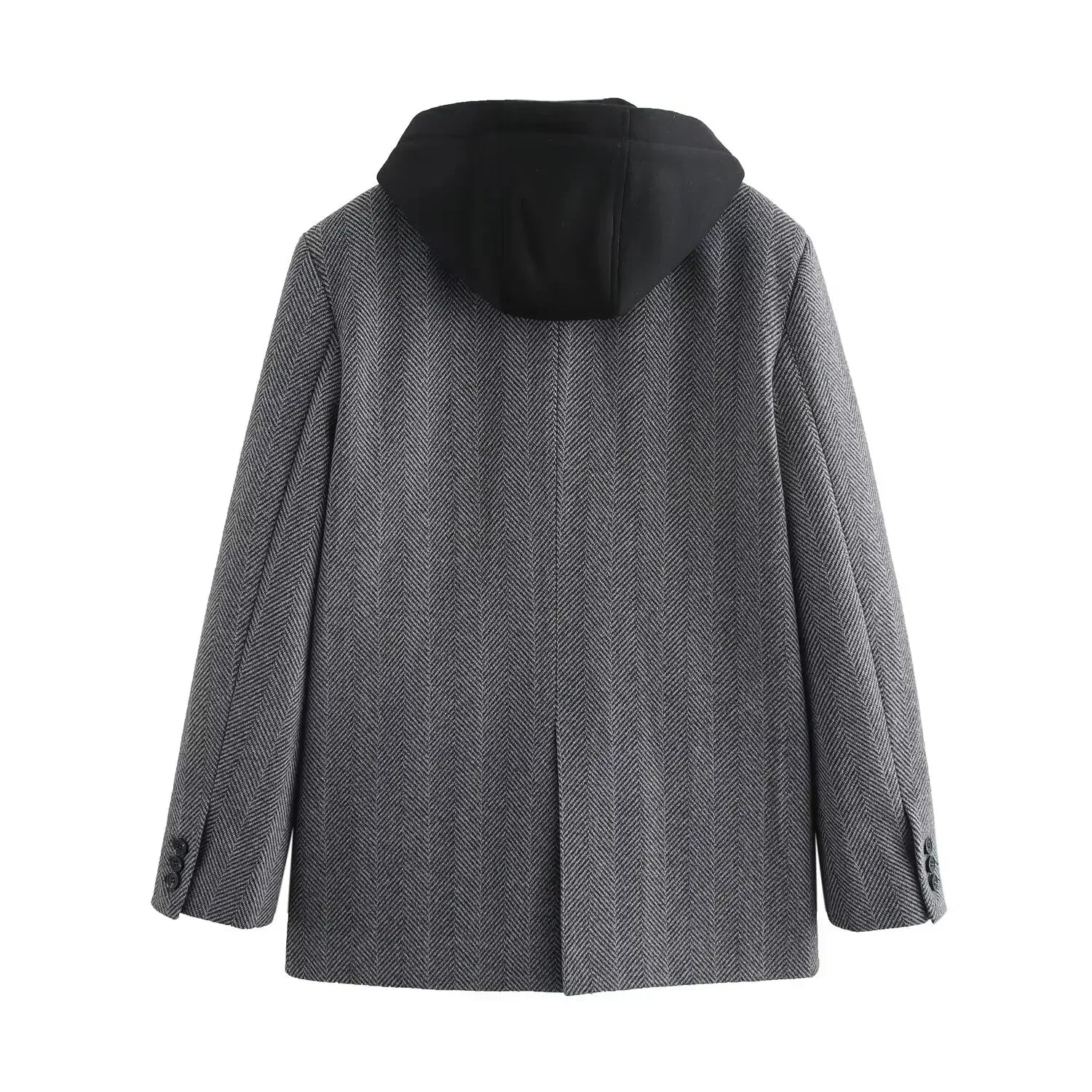 Ladies' new fashion flip design casual hooded patchwork herringbone diagonal suit coat retro long sleeved women's coat chic top