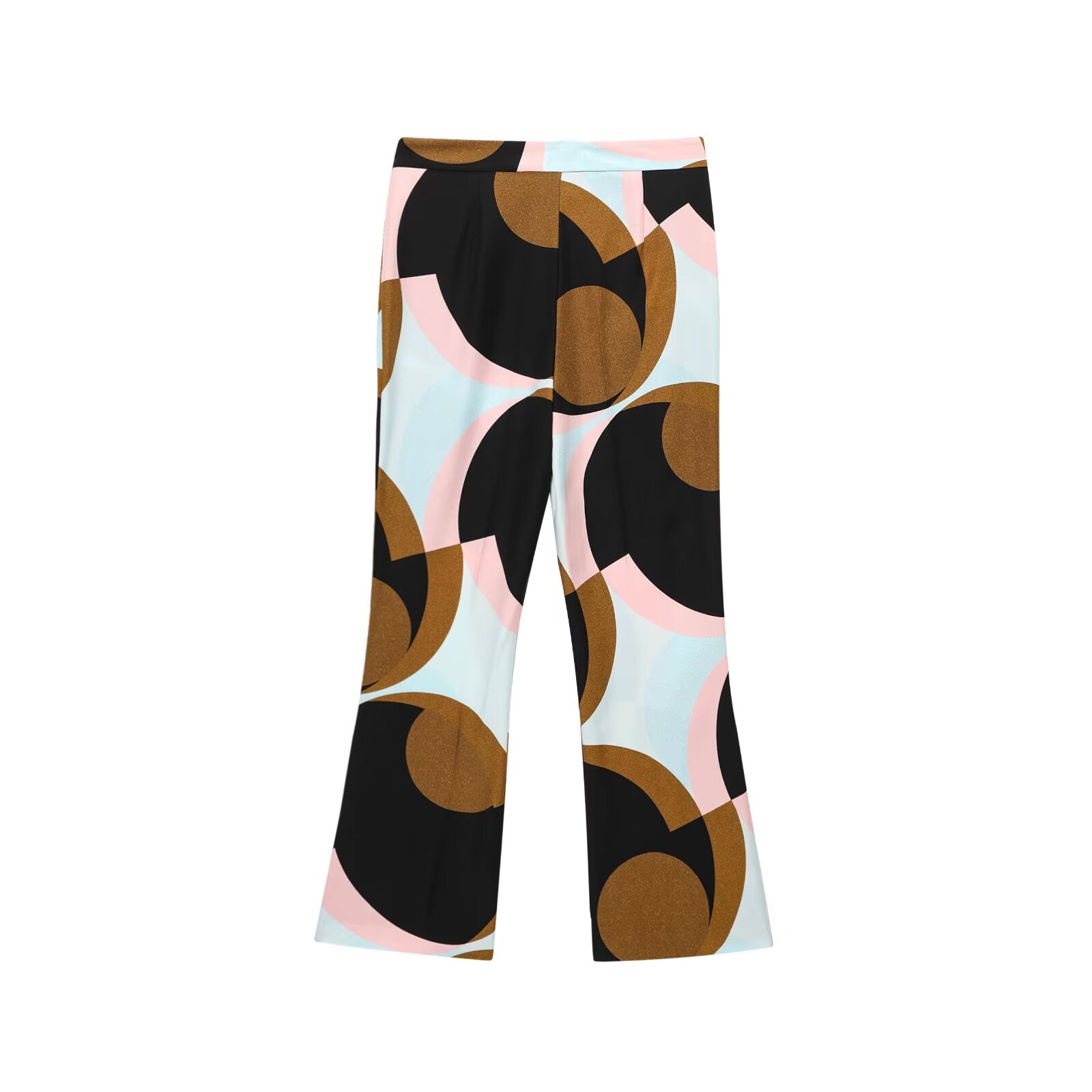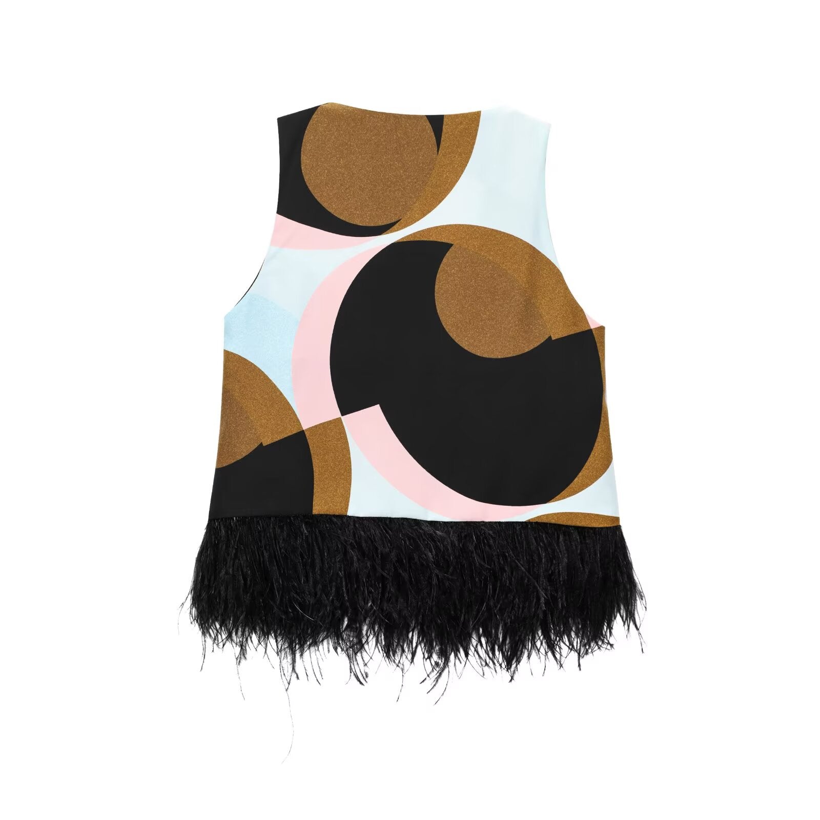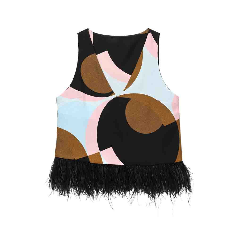 set woman 2 pieces New feather decoration printed V-neck top+Pants suit