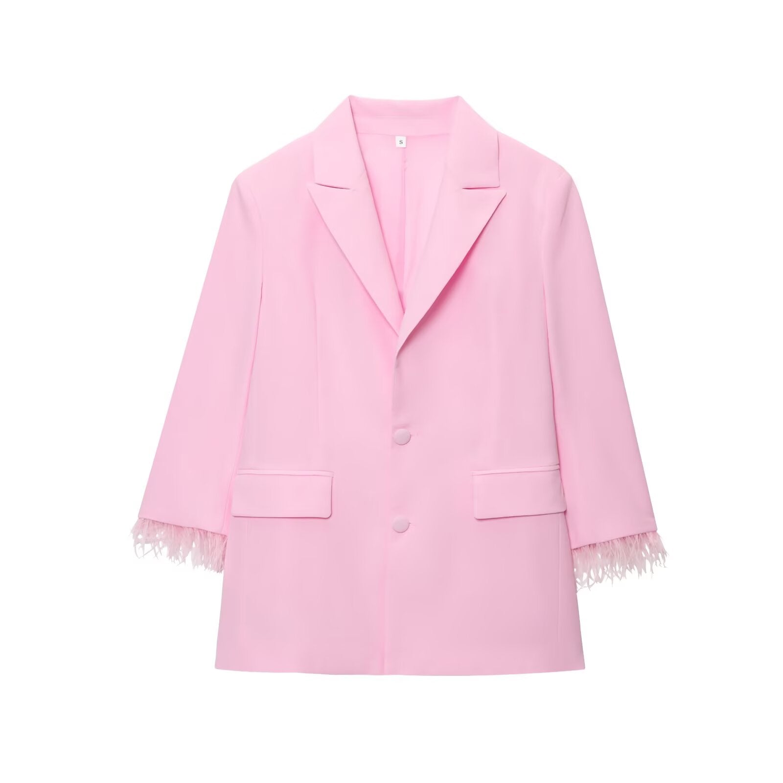 set Women's 2 pieces new fashion Feathered Cuff Casual Single breasted Suit Coat+Pants Suit