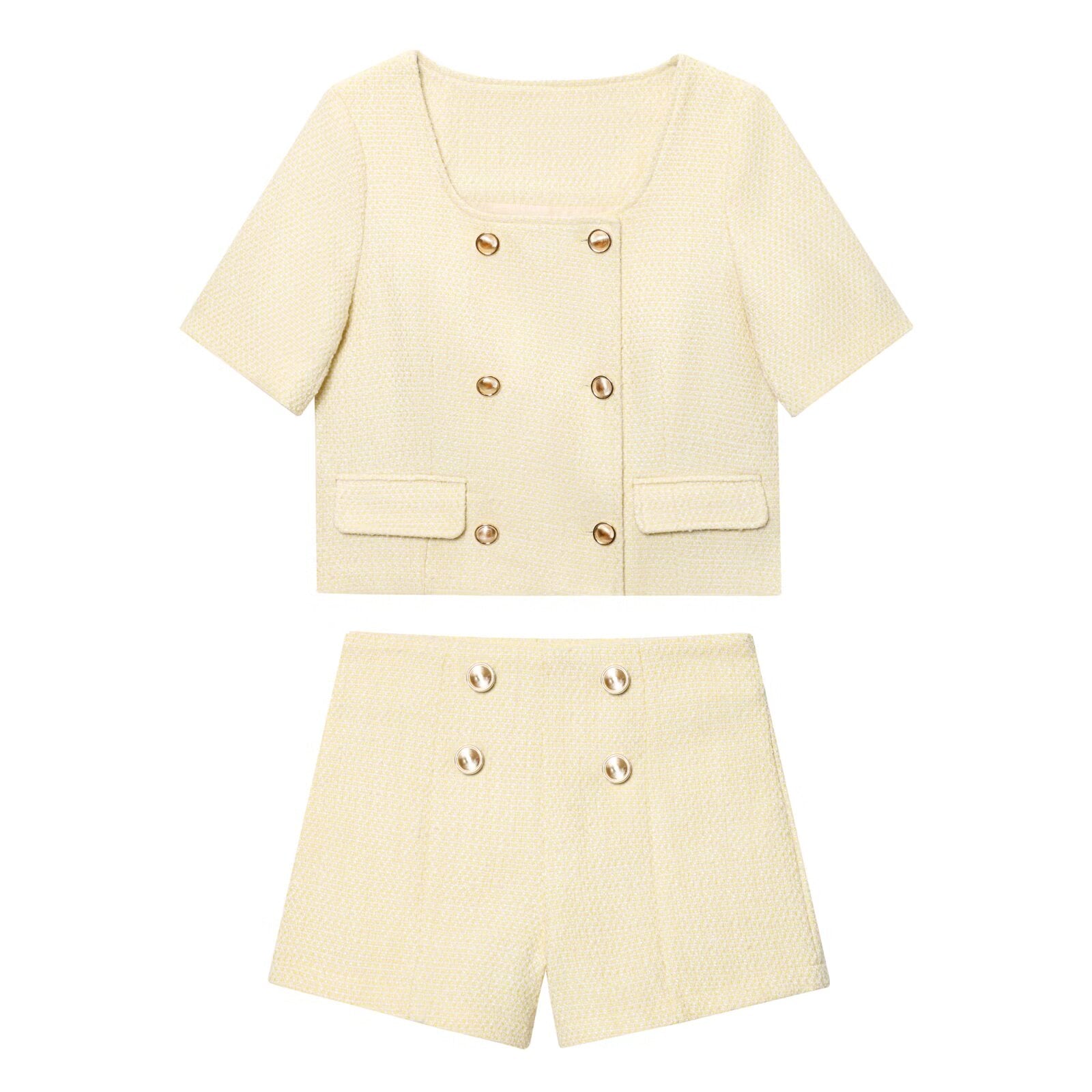 Suit women's 2-piece 2025 fashion textured short-sleeved suit jacket+shorts women's suit