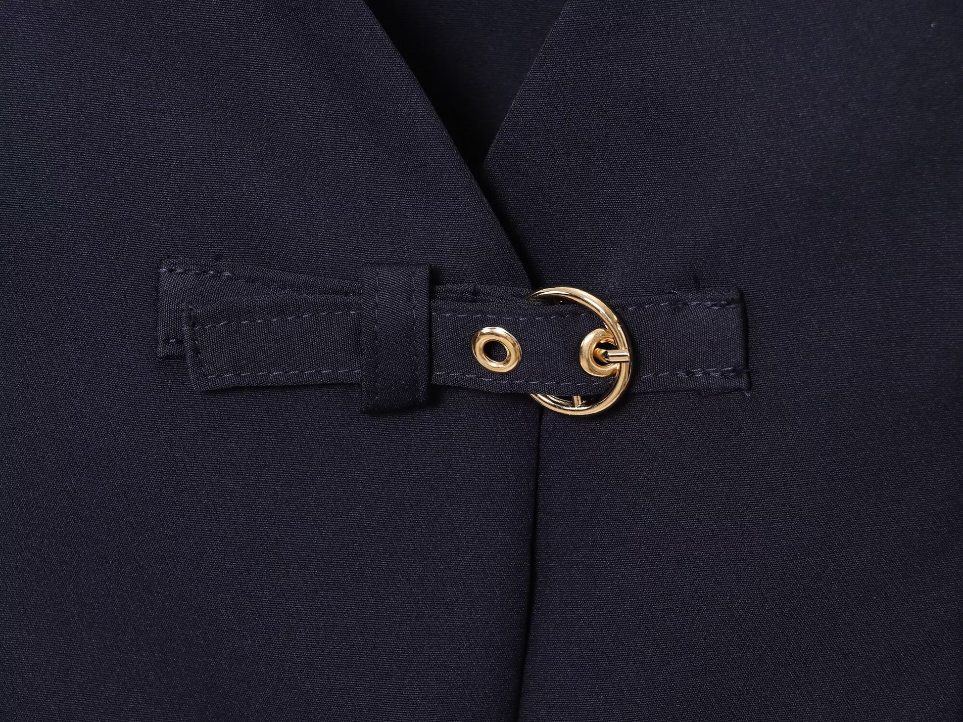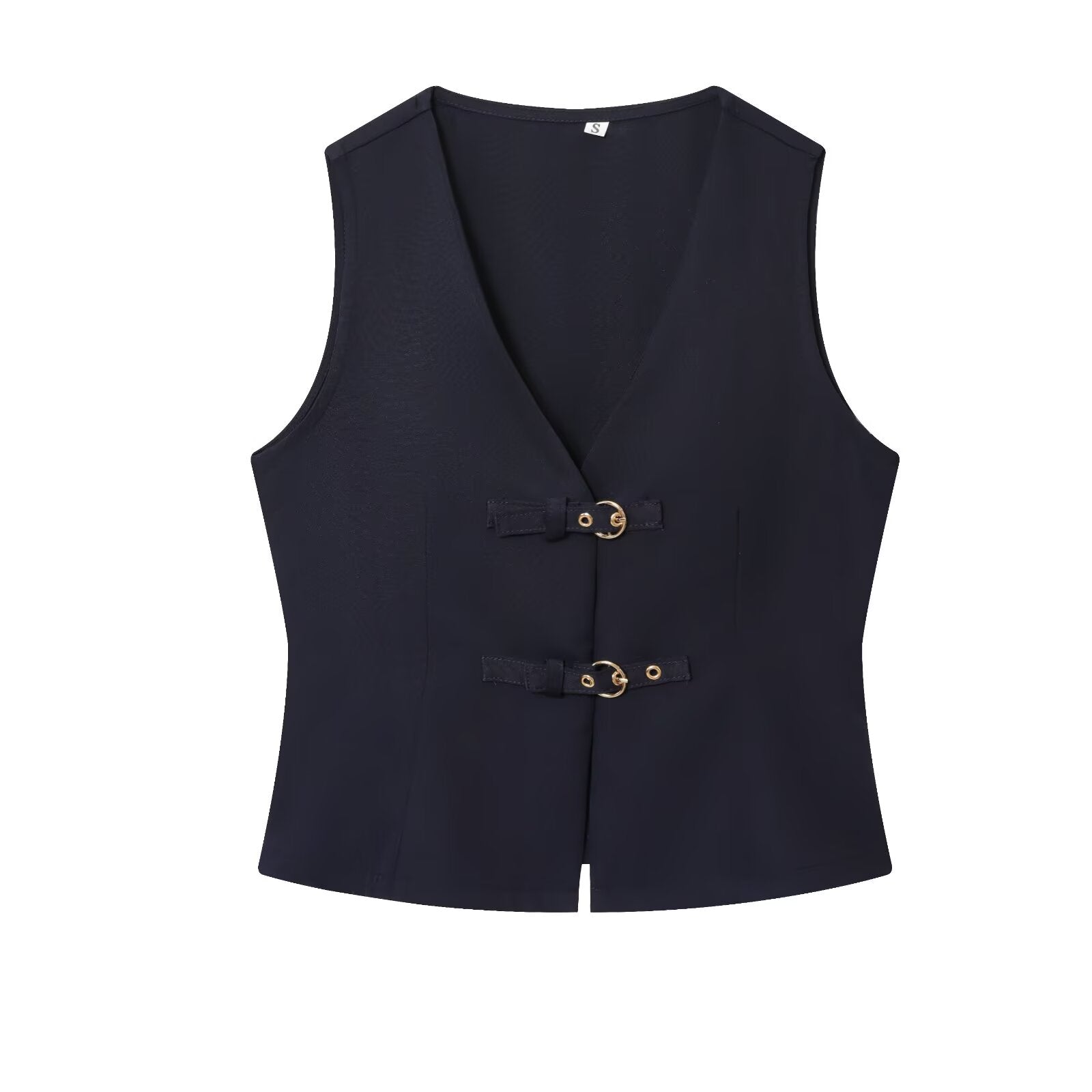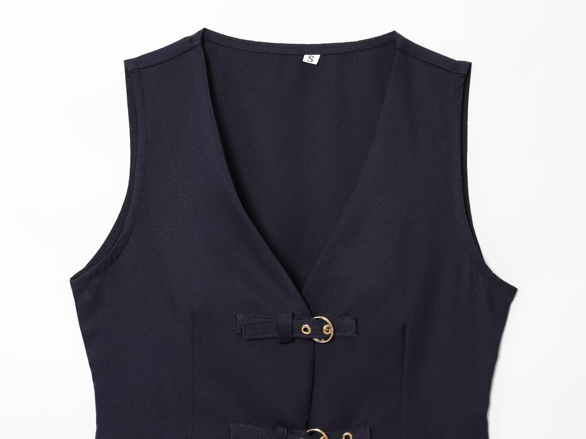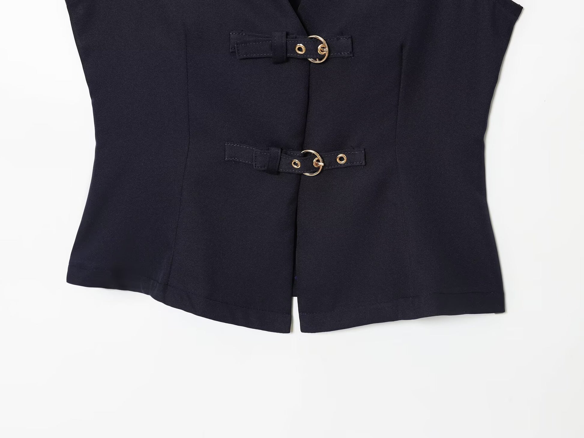 suit Women's 2 pieces buckle decoration vest style crepe top+Pants