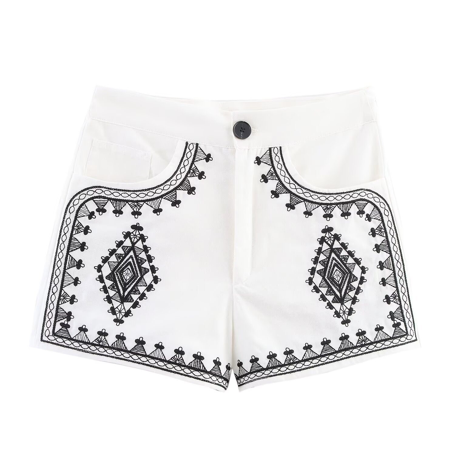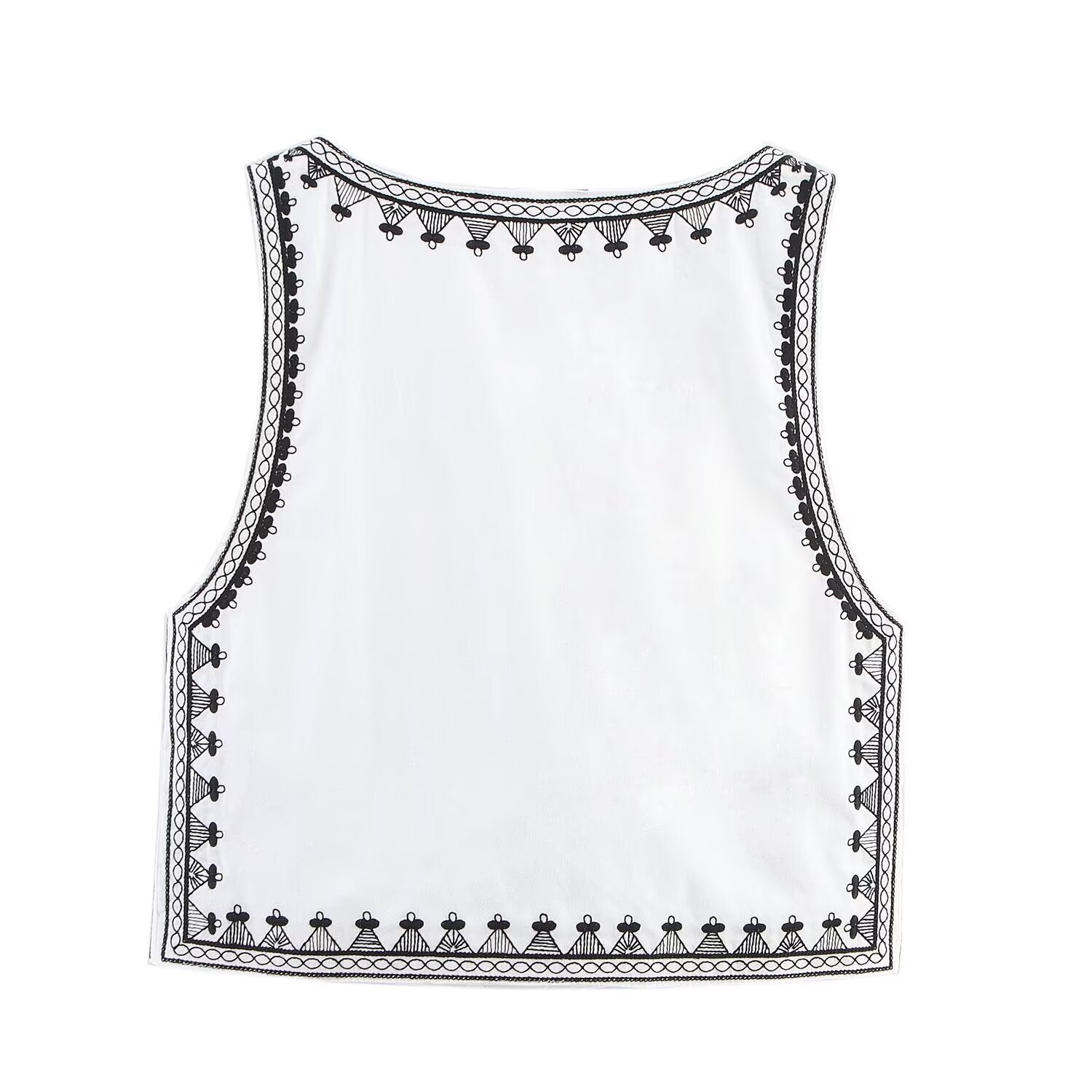 suit Women's 2 pieces fashion short contrasting embroidered V-neck vest+Shorts suit