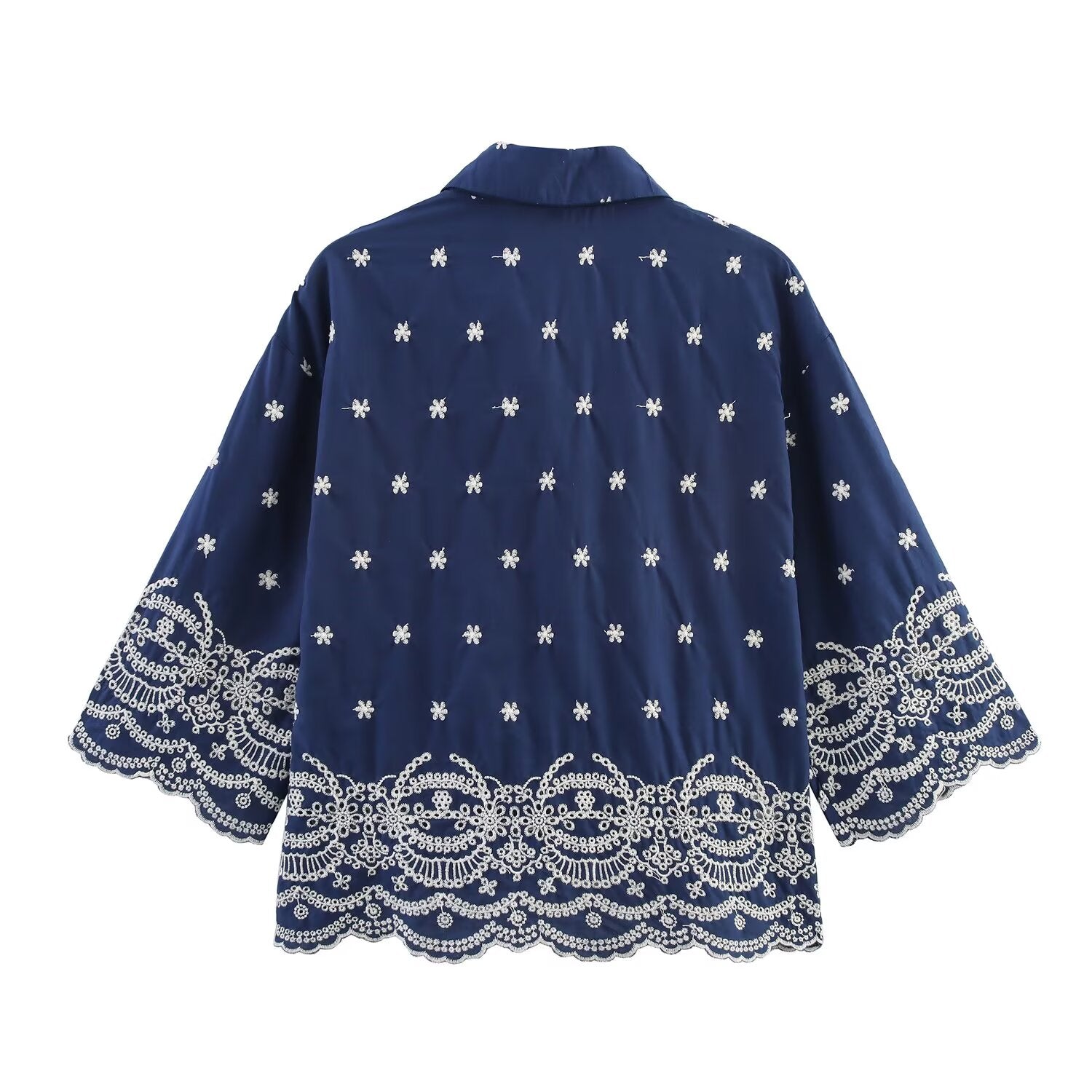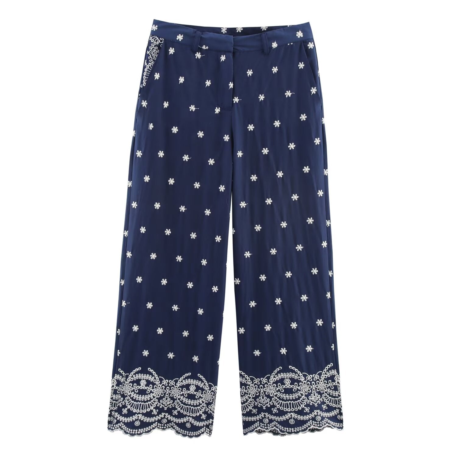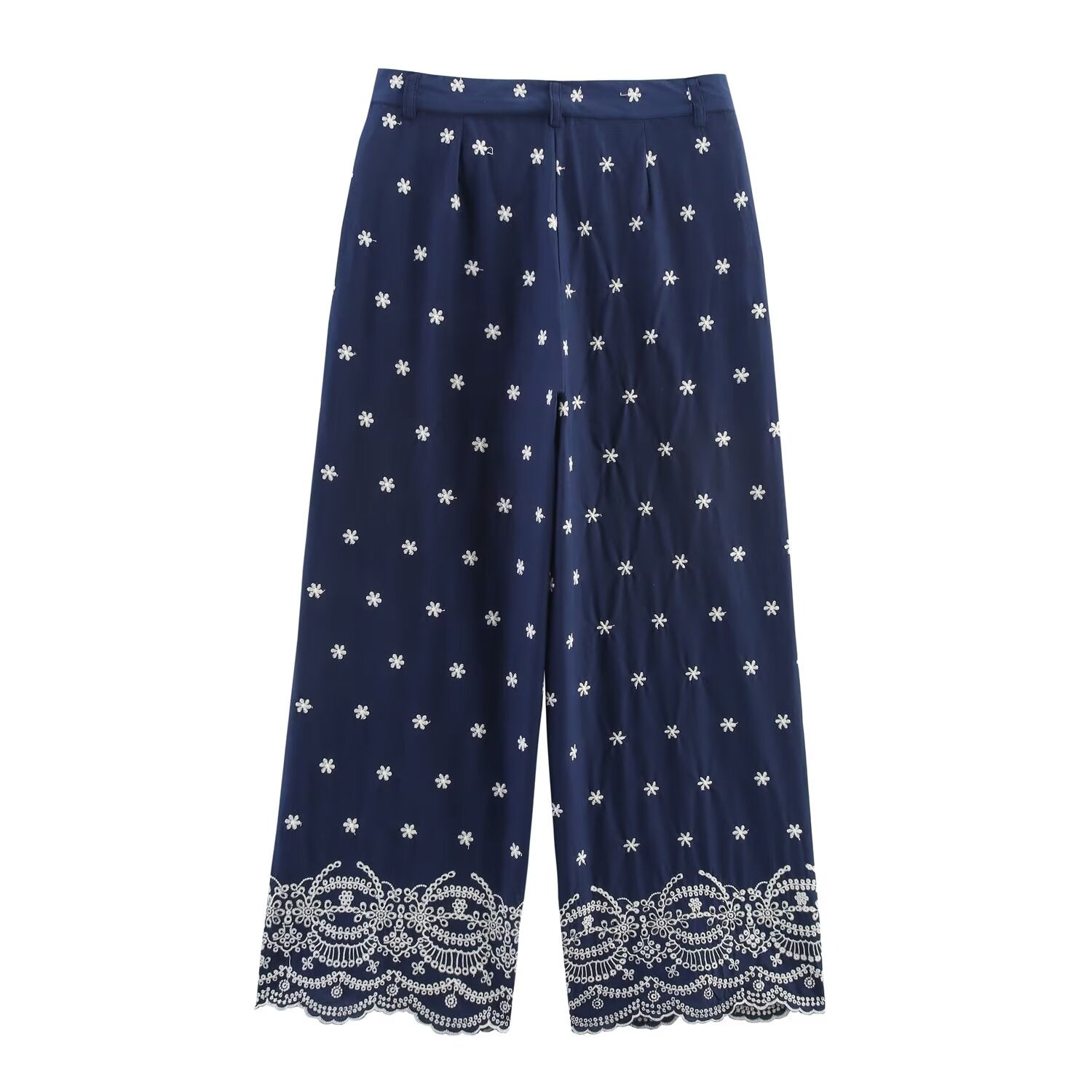 suit Women's 2 pieces New fashion loose hollow embroidery button up shirt + Pants suit