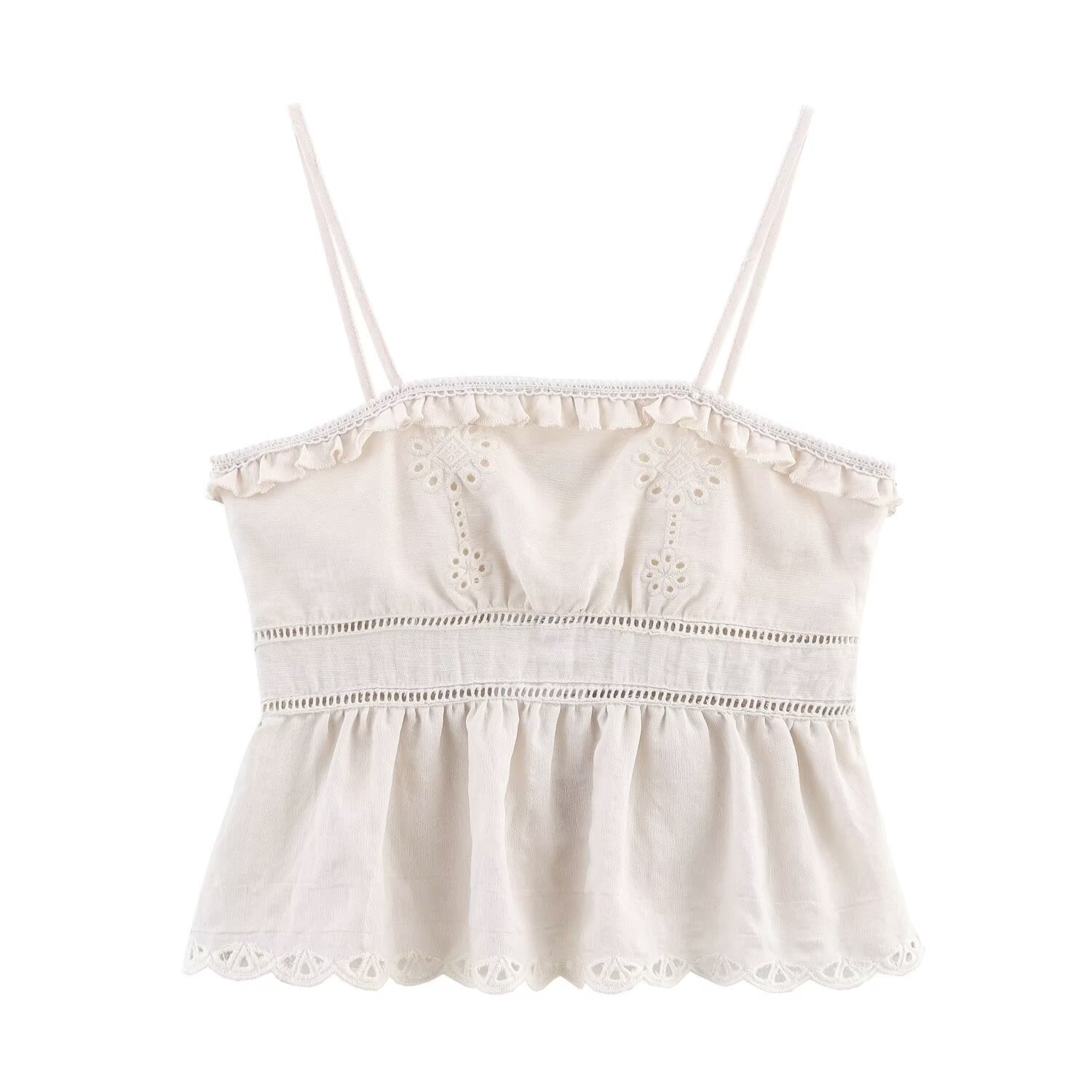 suit Women's 2 pieces new hollowed out embroidered suspender top+Skirts suit