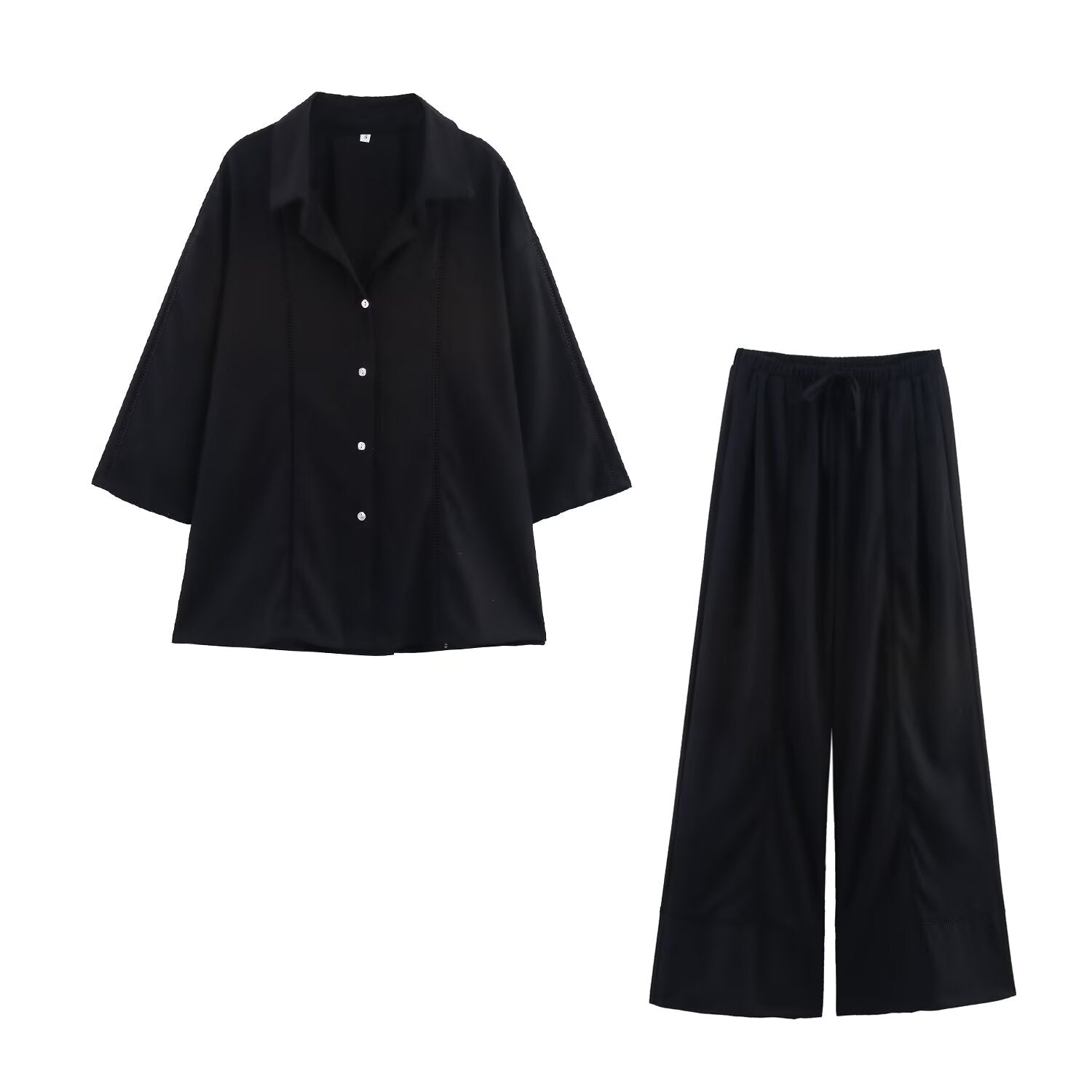suit Women's 2 pieces new loose linen blend long sleeved shirt+Pants suit