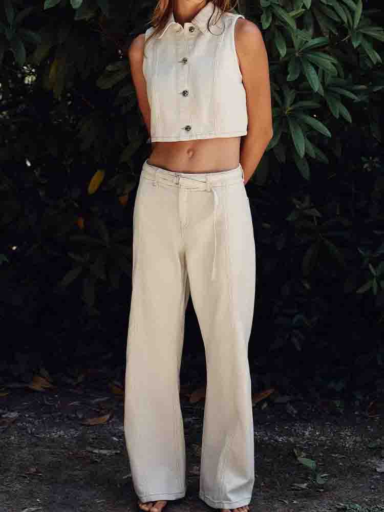 suit Women's 2 pieces New short single breasted lapel denim vest+Jeans suit