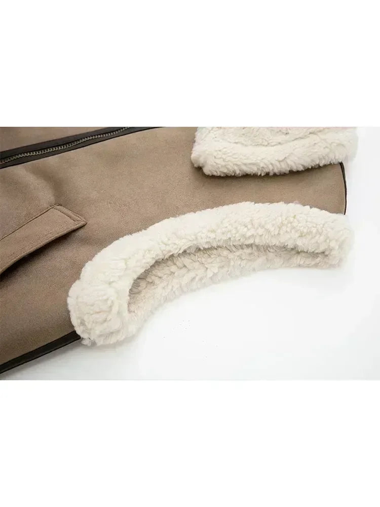 Women 2024 autumn New Fashion Fleece stitching vest Vintage Sleeveless Pockets Female Waistcoat Chic Tops