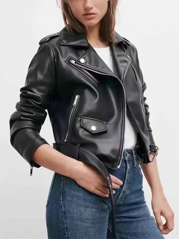 Women 2023 New Fashion artificial leather Jacket Coat Vintage Long Sleeve Female Outerwear Chic Overshirt