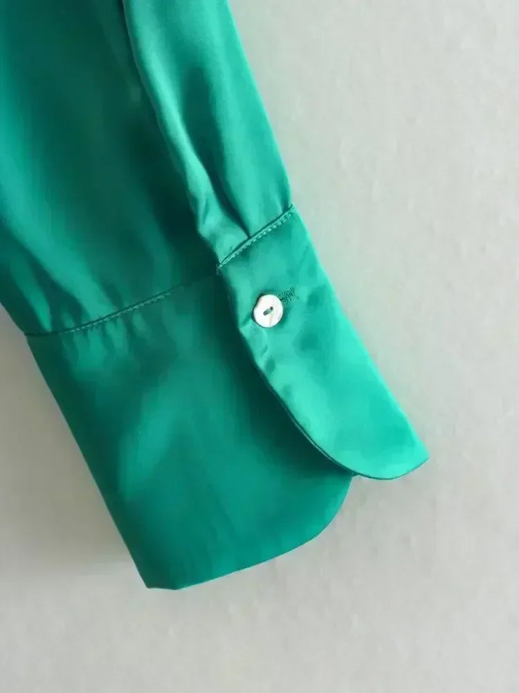Women 2024 New Fashion Flowy Satin Loose Shirts Blouses Vintage Long Sleeve Button-up Female Shirts Chic Tops