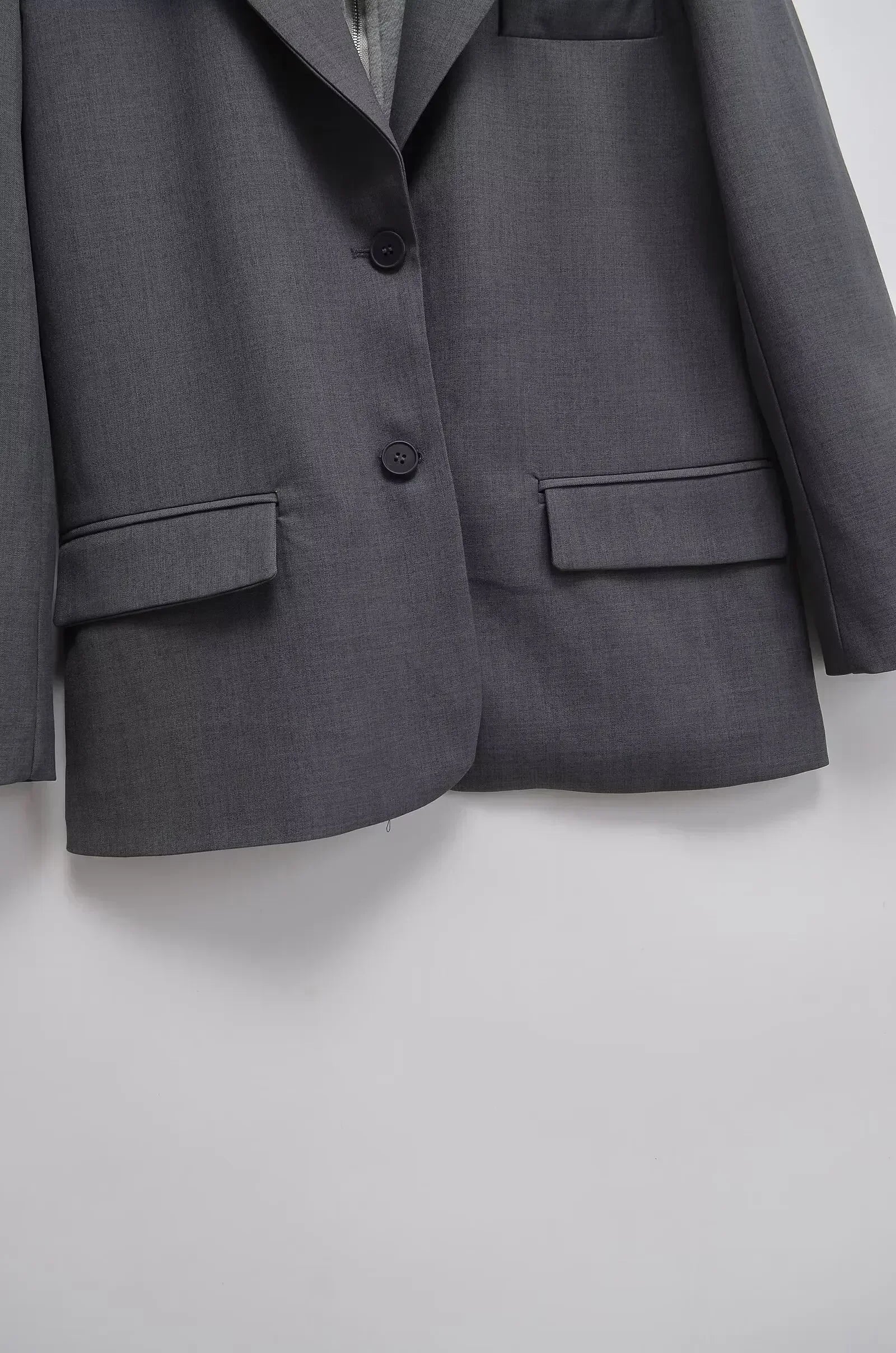 Women's 2024 New Fashion Flip Pocket Decoration Loose Single breasted Hooded Suit Coat Retro Long sleeved Women's Coat Chic Top
