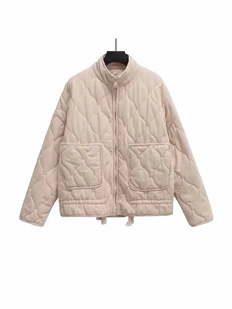 Women's 2024 New Fashion Large Pocket Decoration Loose Warm Washed Cotton Coat Retro Long Sleeve Zipper Women's Coat