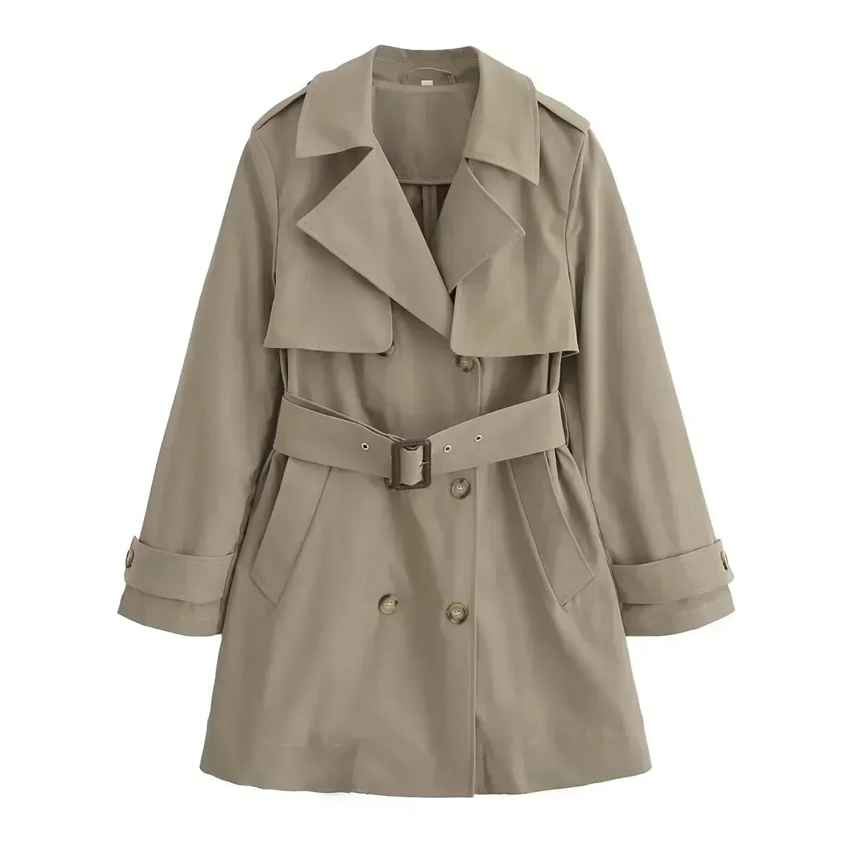Women's 2024 new fashion with Belt casual short double breasted trench coat retro long sleeved side pocket women's coat