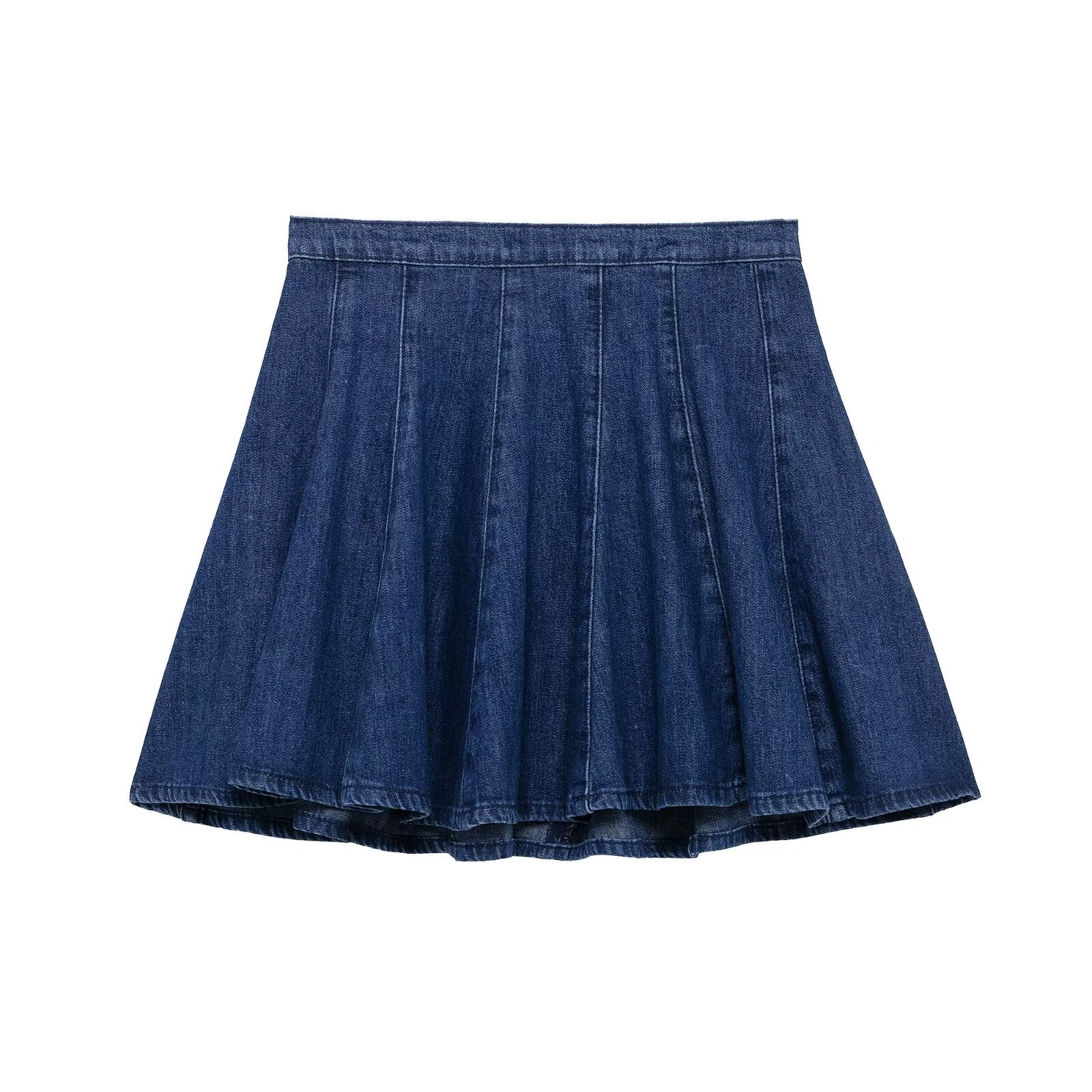 Women's 2025 new fashion casual high waist wide pleated denim mini skirt