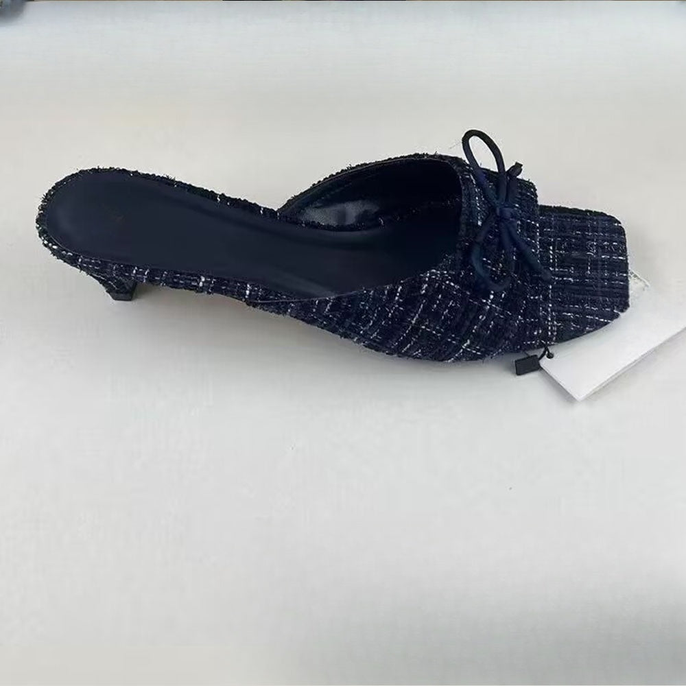 Women's 2025 New Fashion Joker Bow Decorative Square Head Small High-heeled Sandals