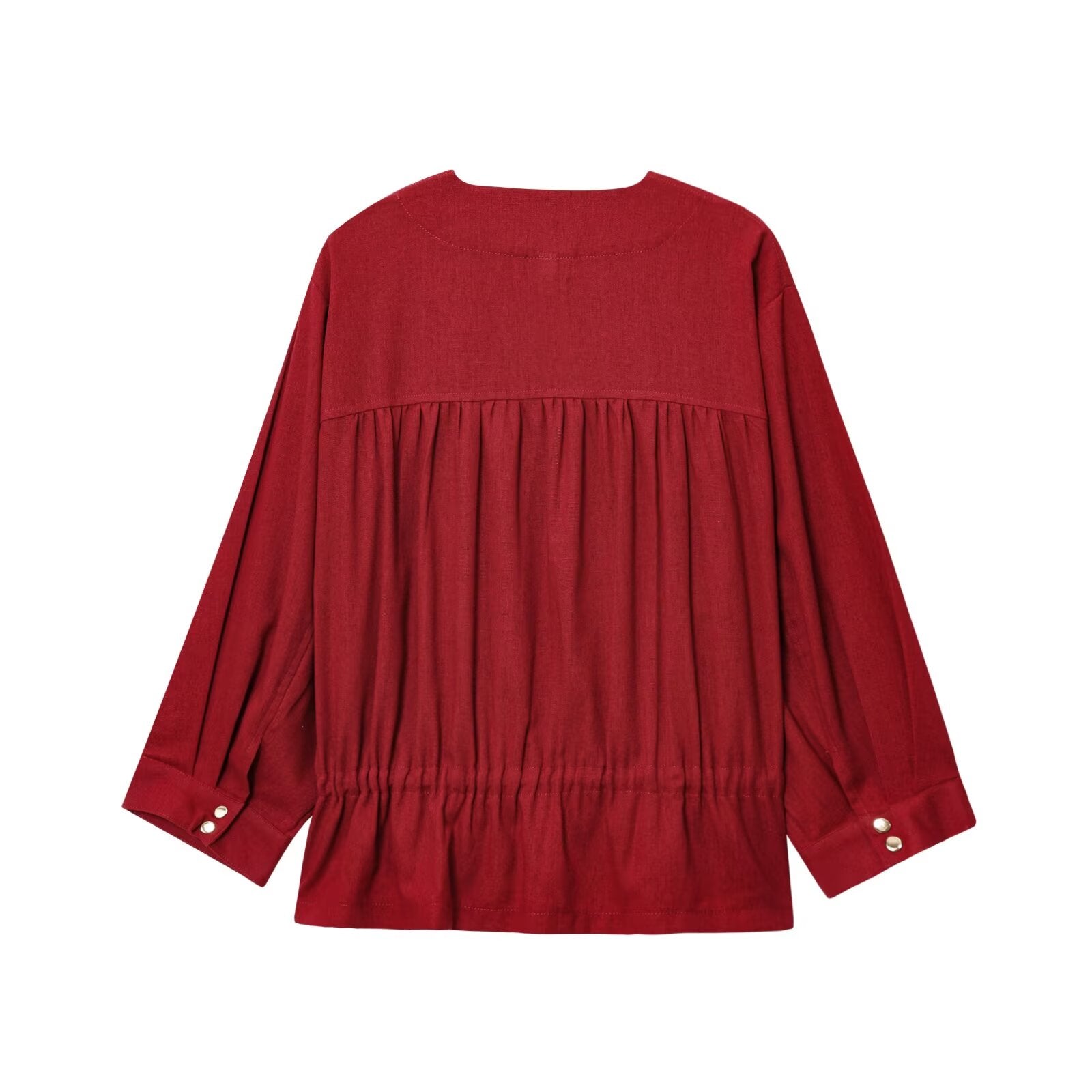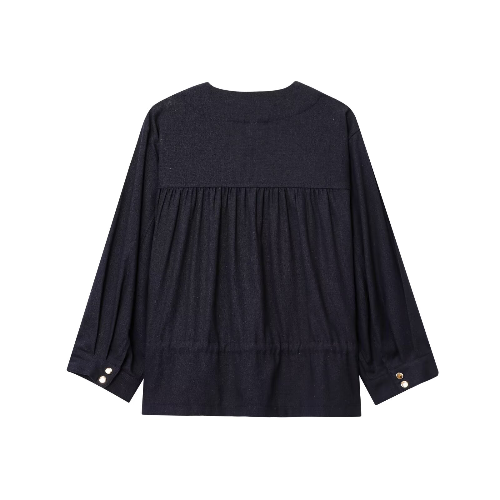 Women's 2025 new fashion linen blend long sleeved zipper jacket coat