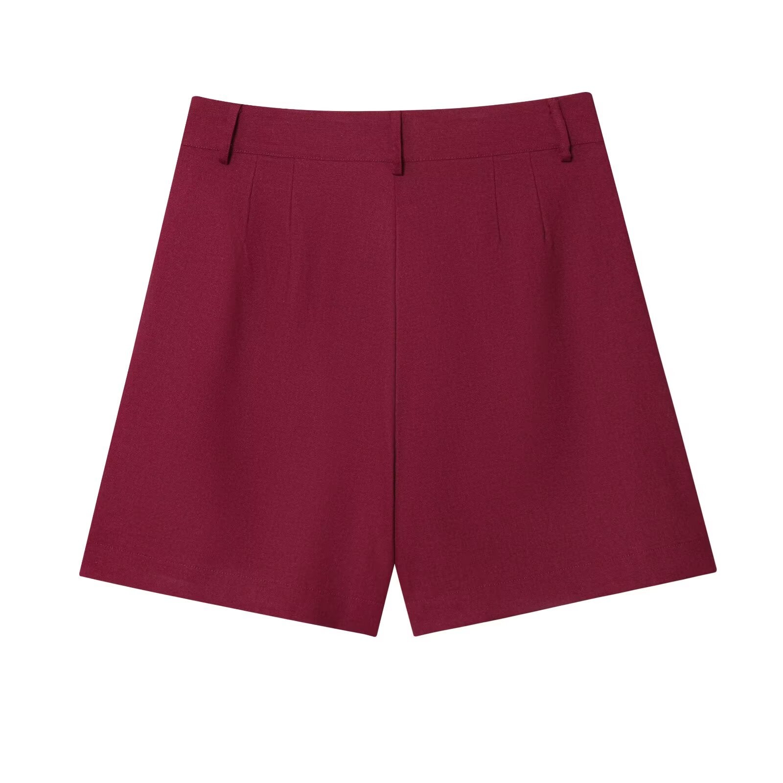 Women's 2025 new fashion linen blend sleeveless pleated top+shorts suit