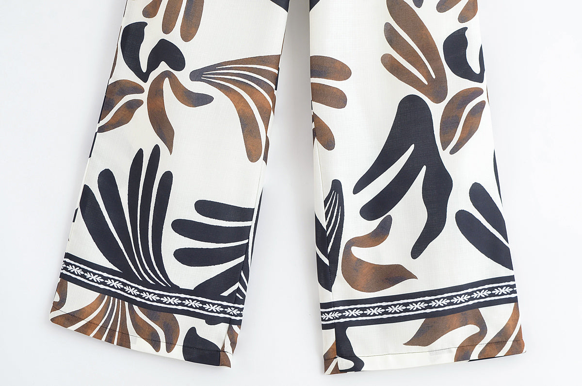 Women's 2025 new fashion mid waist retro printed casual pants