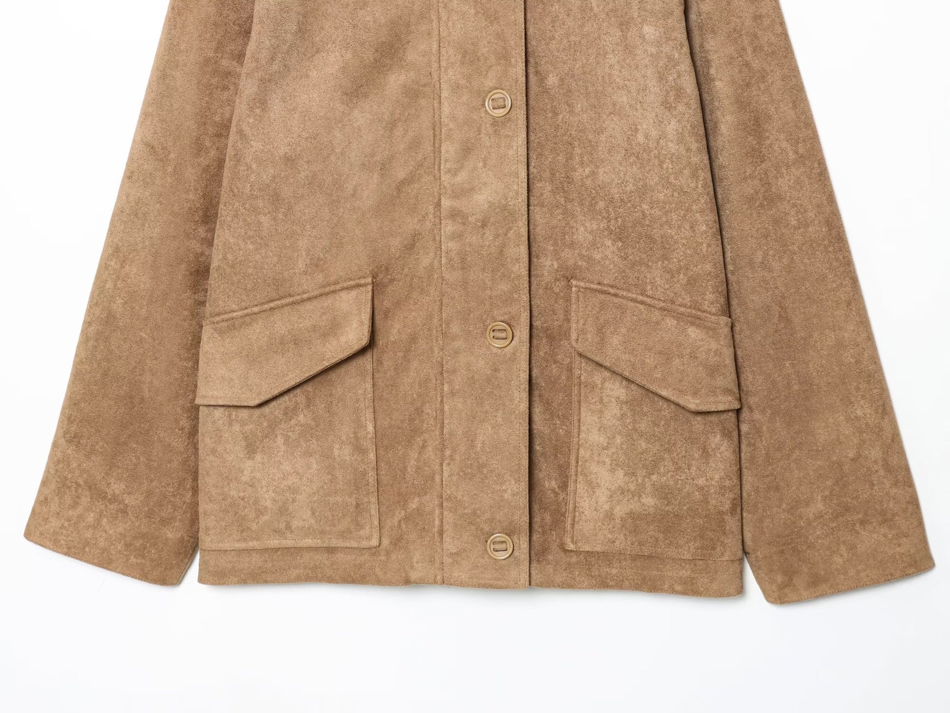 Women's 2025 new fashion suede texture lapel faux leather Coat