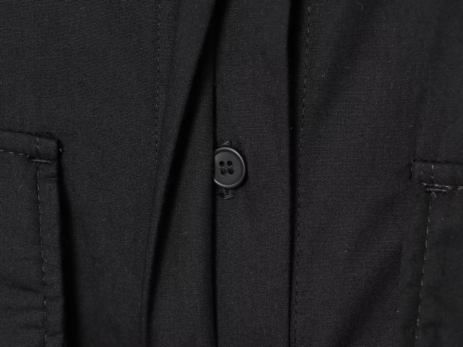 Women's 2025 New Fashion With Belt Black Poplin Button-up Shirt