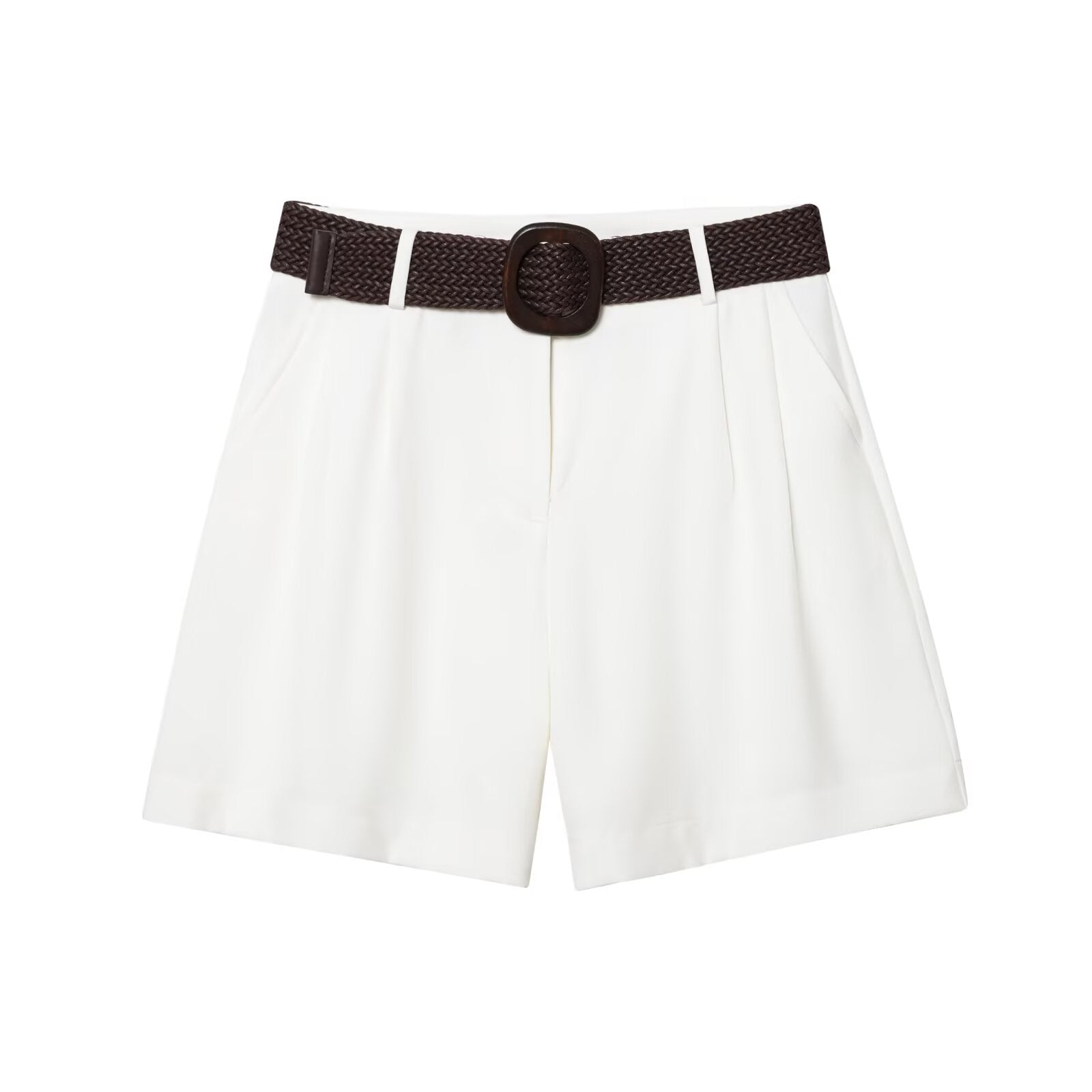 Women's chic Fashion With Belt casual side pocket pleated shorts