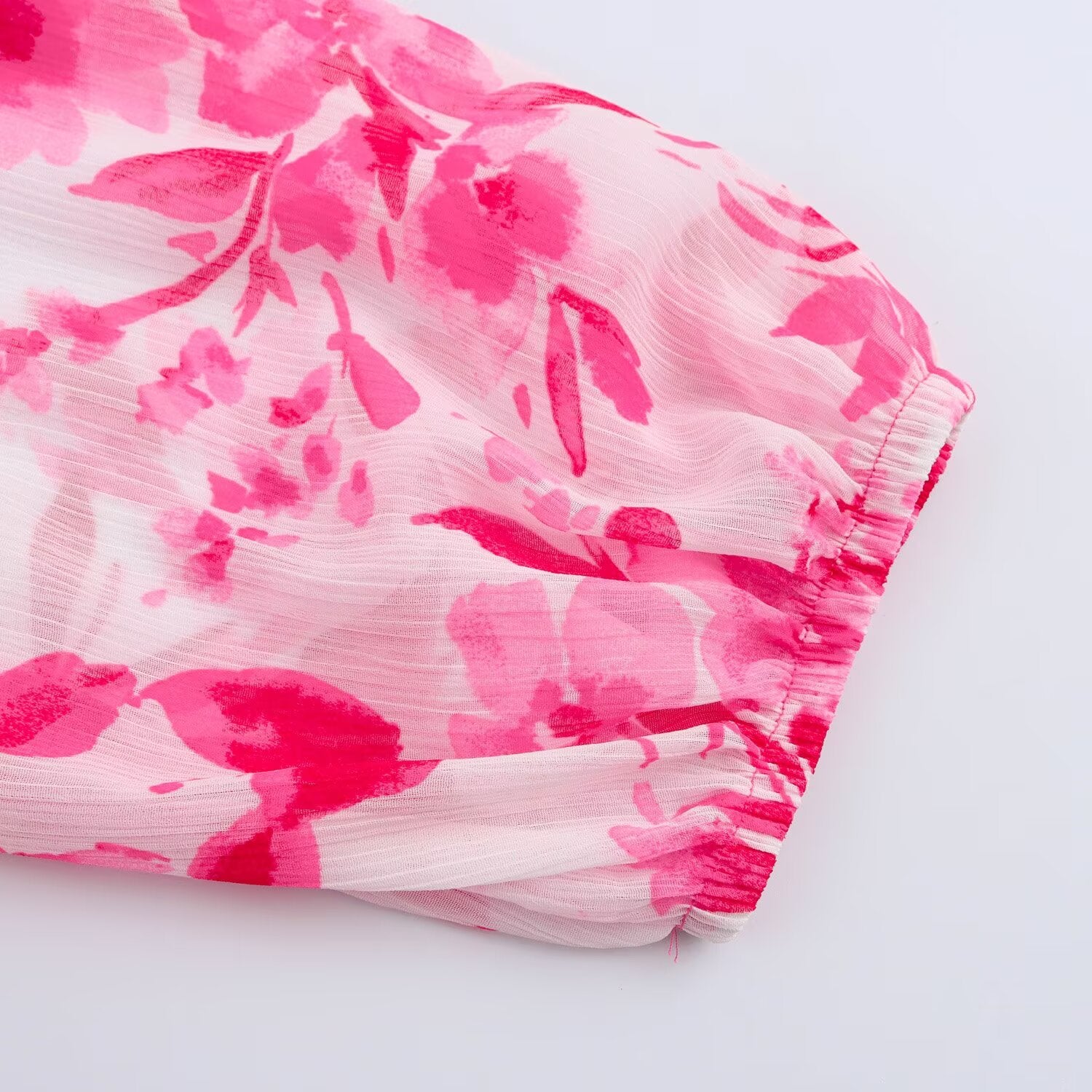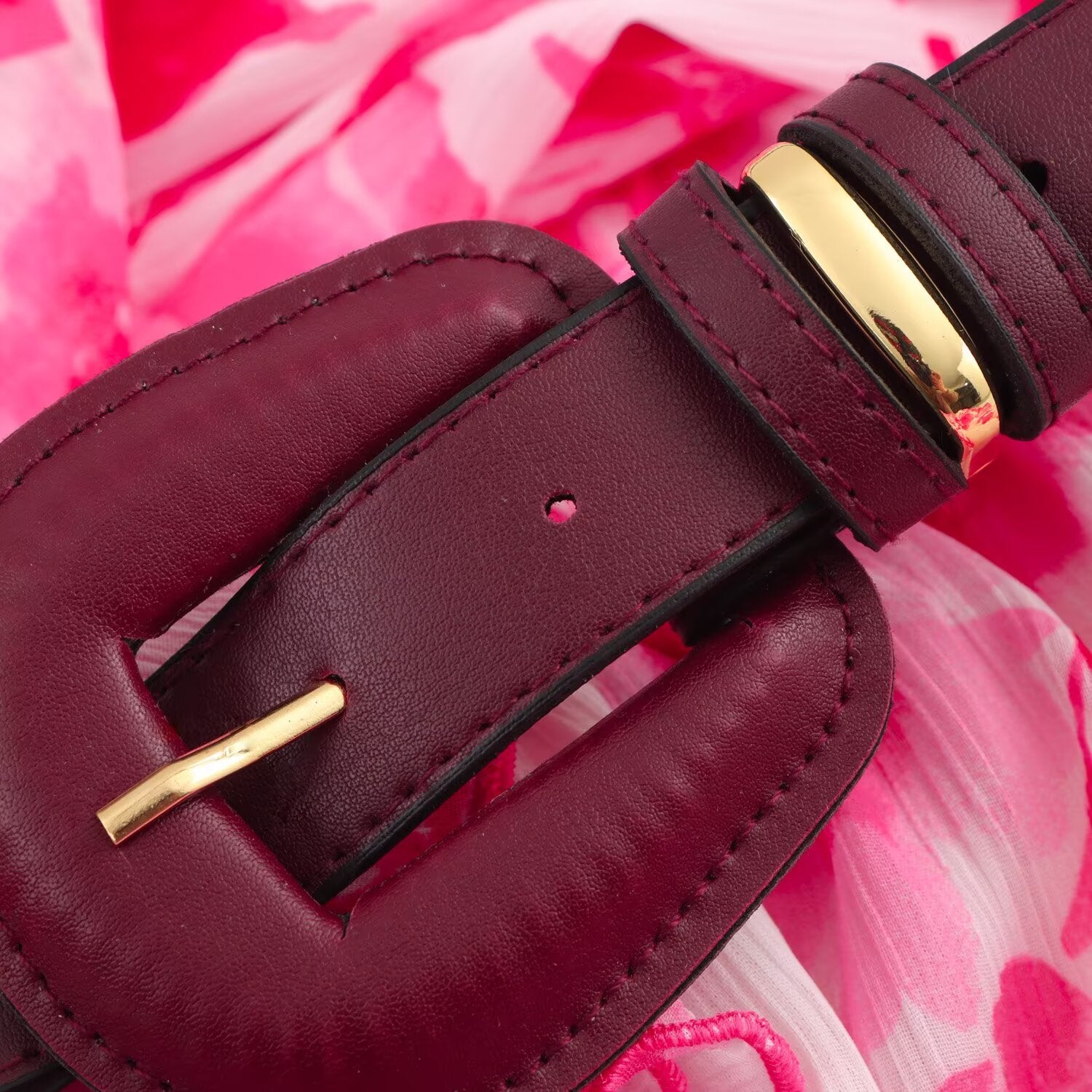 Women's new chic fashion With Belt casual layered decoration print V-neck MIDI dress retro long sleeved women's dress