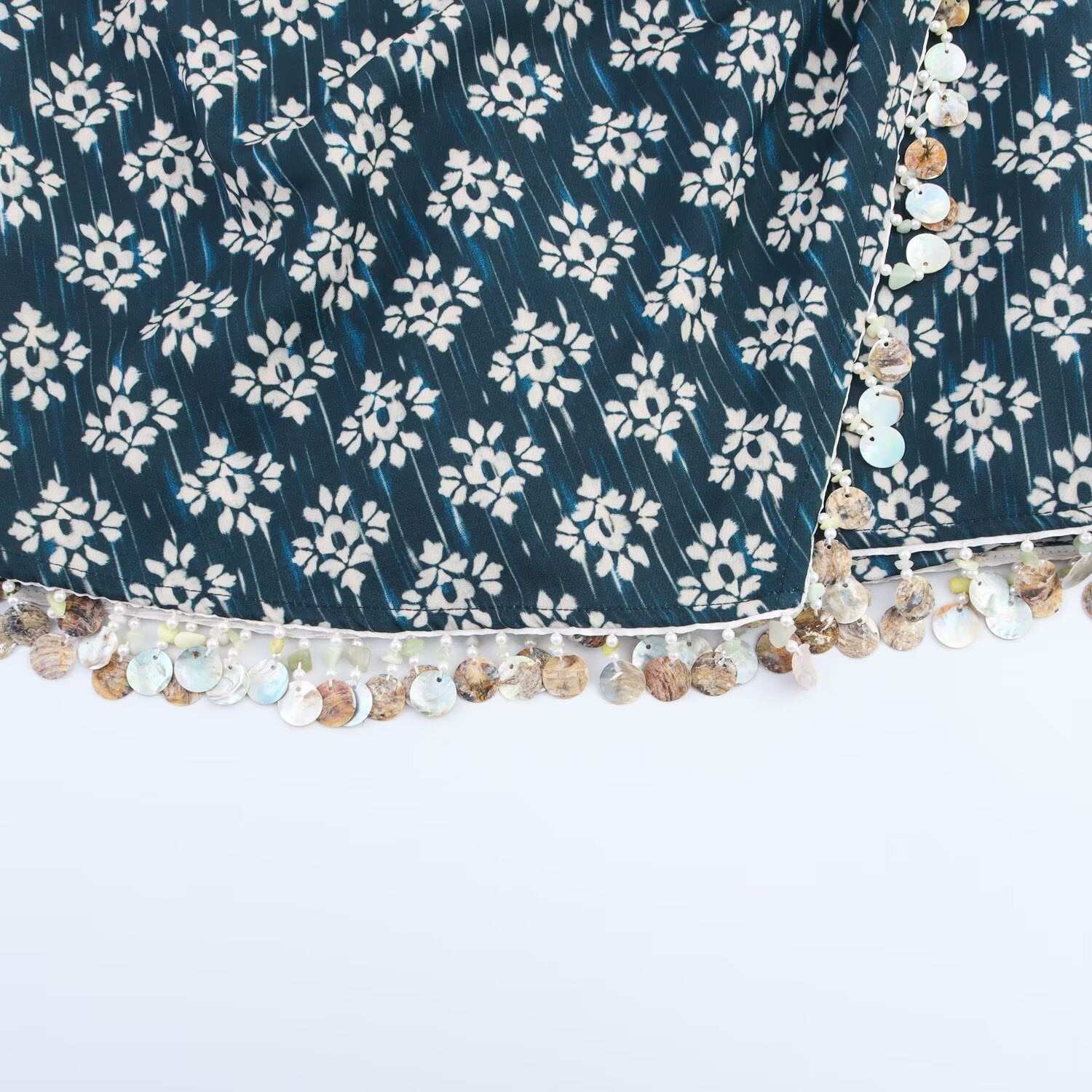 Women's new fashion bead decoration printed asymmetric Shorts Skirts
