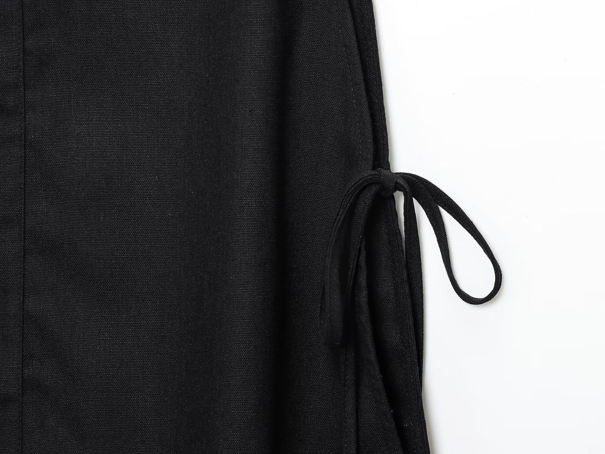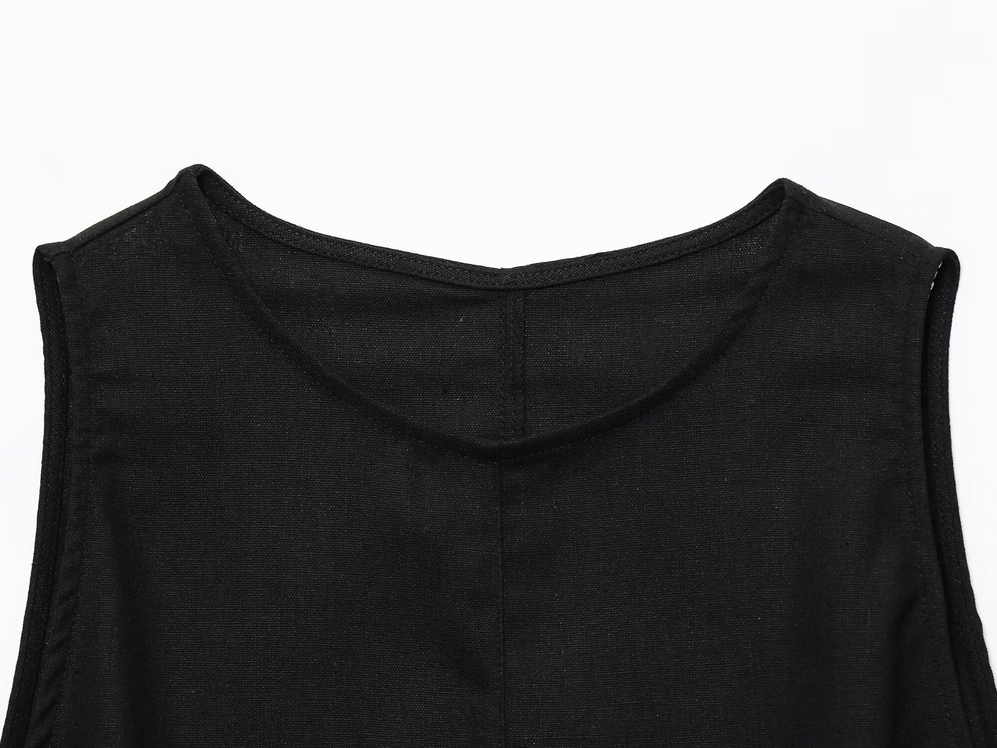 Women's new fashion bow Lace up design sleeveless linen blend top