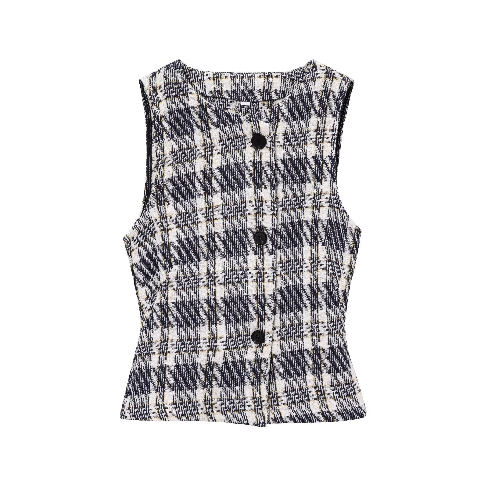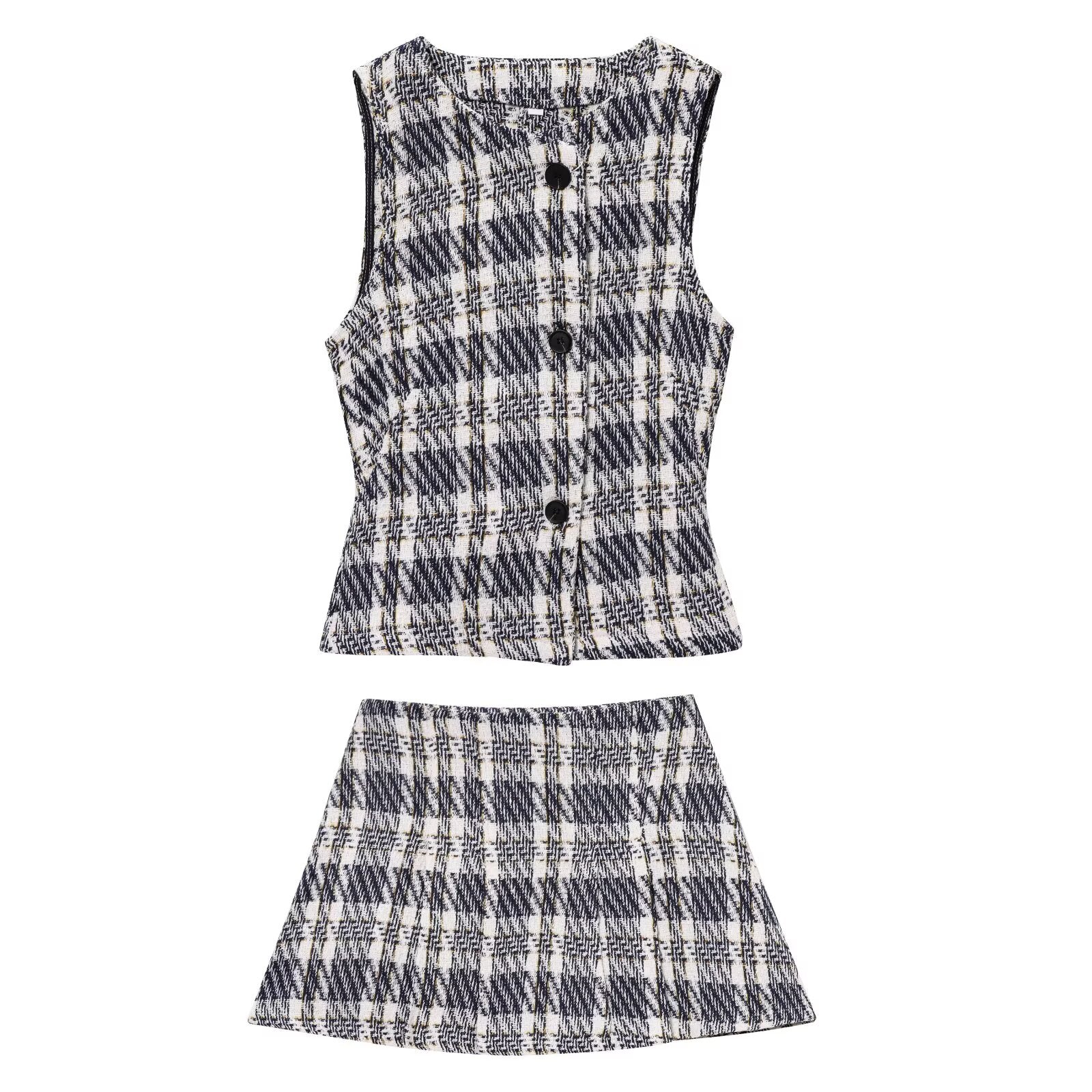 Women's new fashion casual single breasted plaid texture vest+Shorts Skirts suit