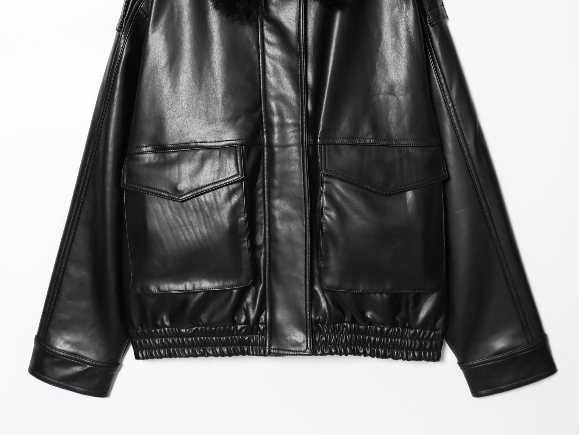 Women's new fashion detachable faux fur collar effect jacket Coat