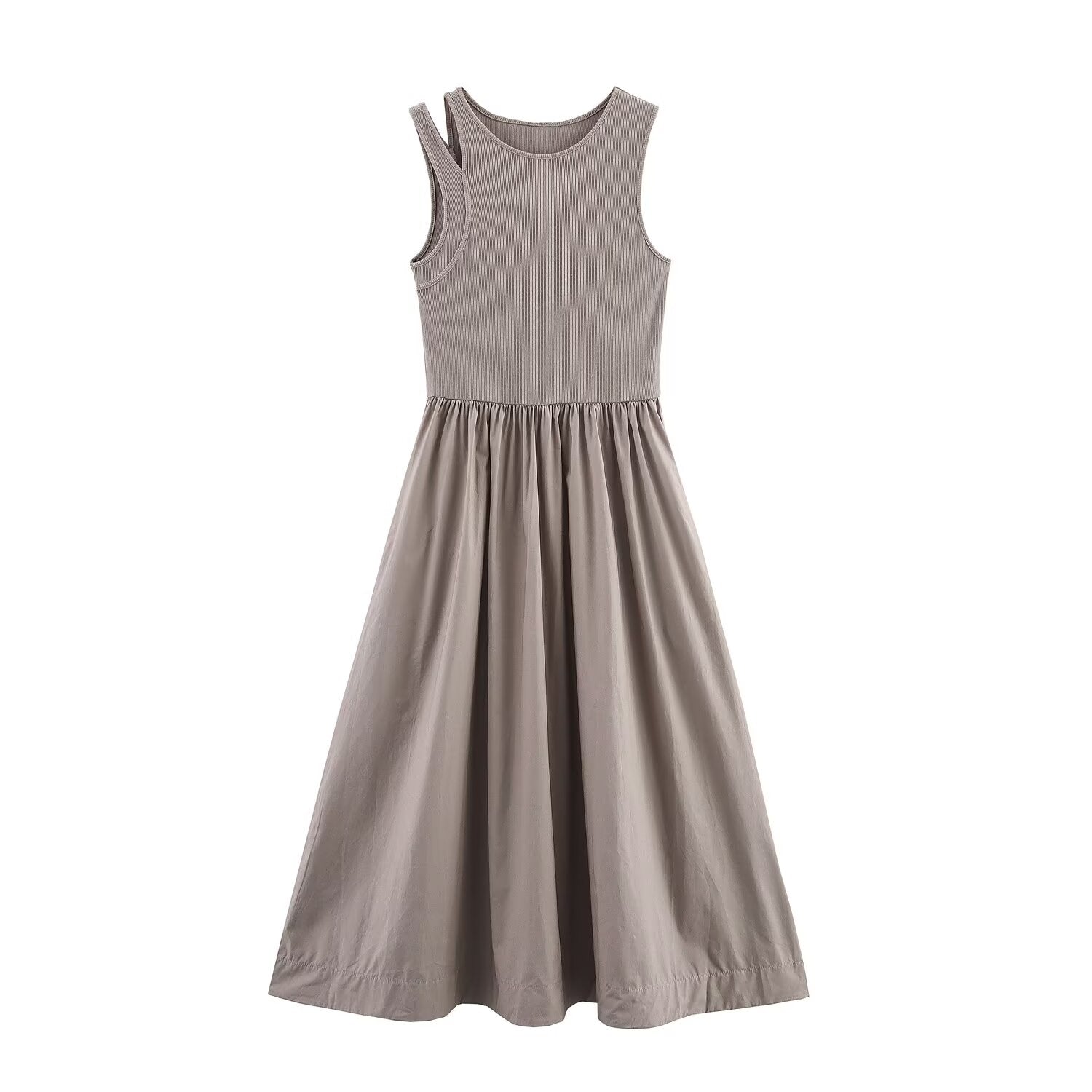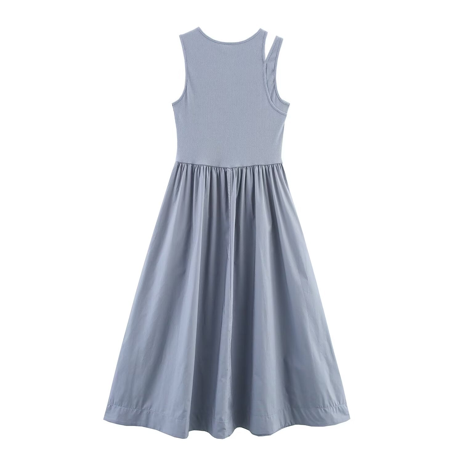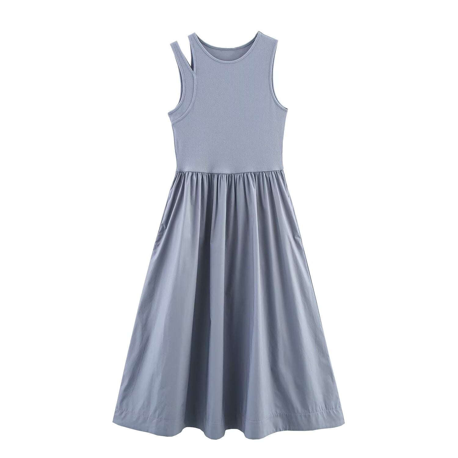 Women's new fashion elastic slim O-Neck sleeveless wide pleated MIDI dress