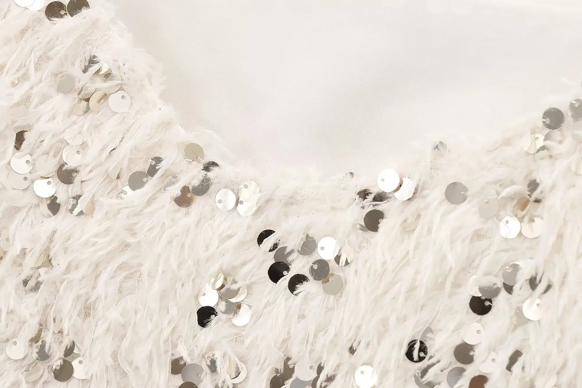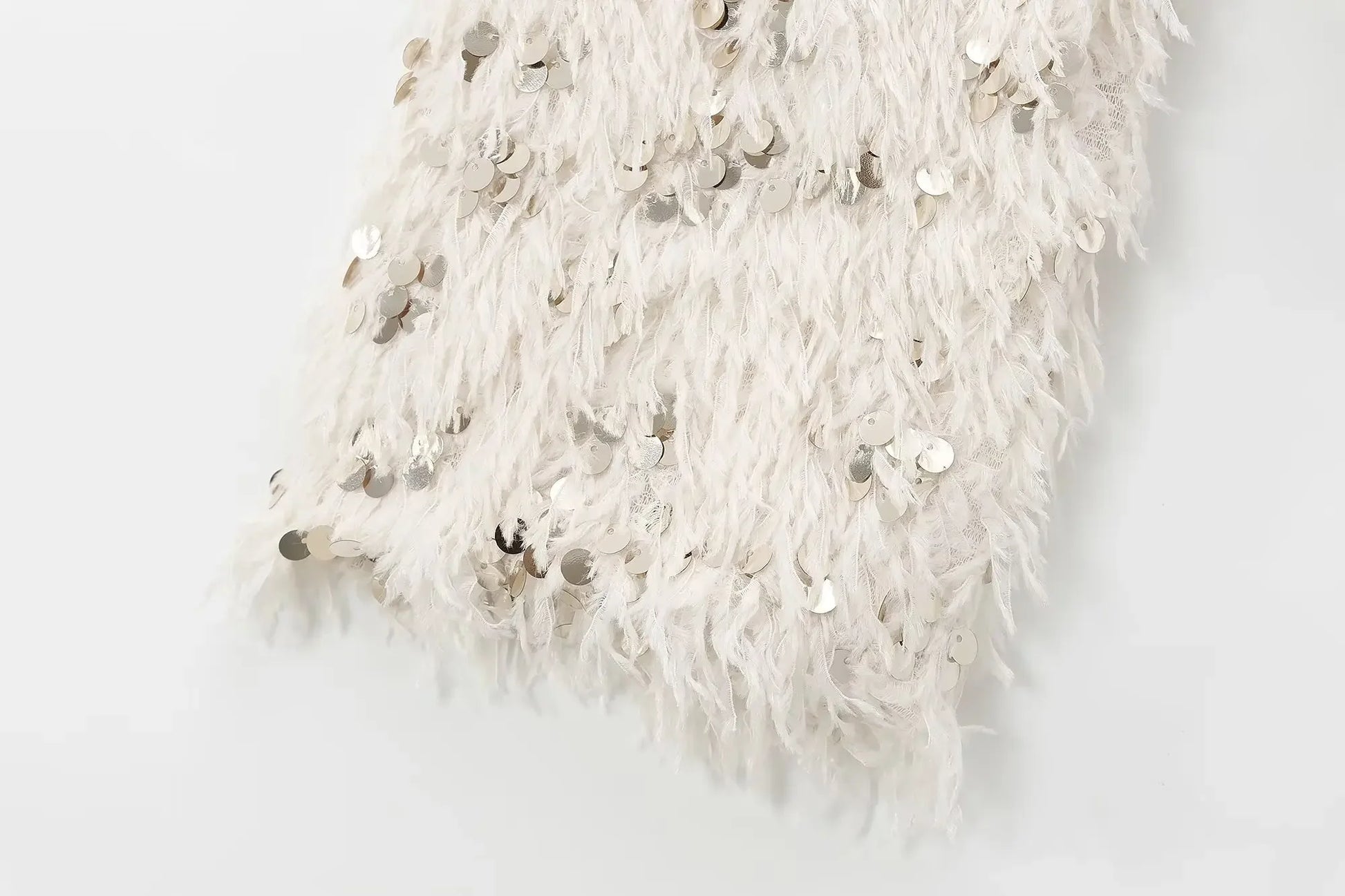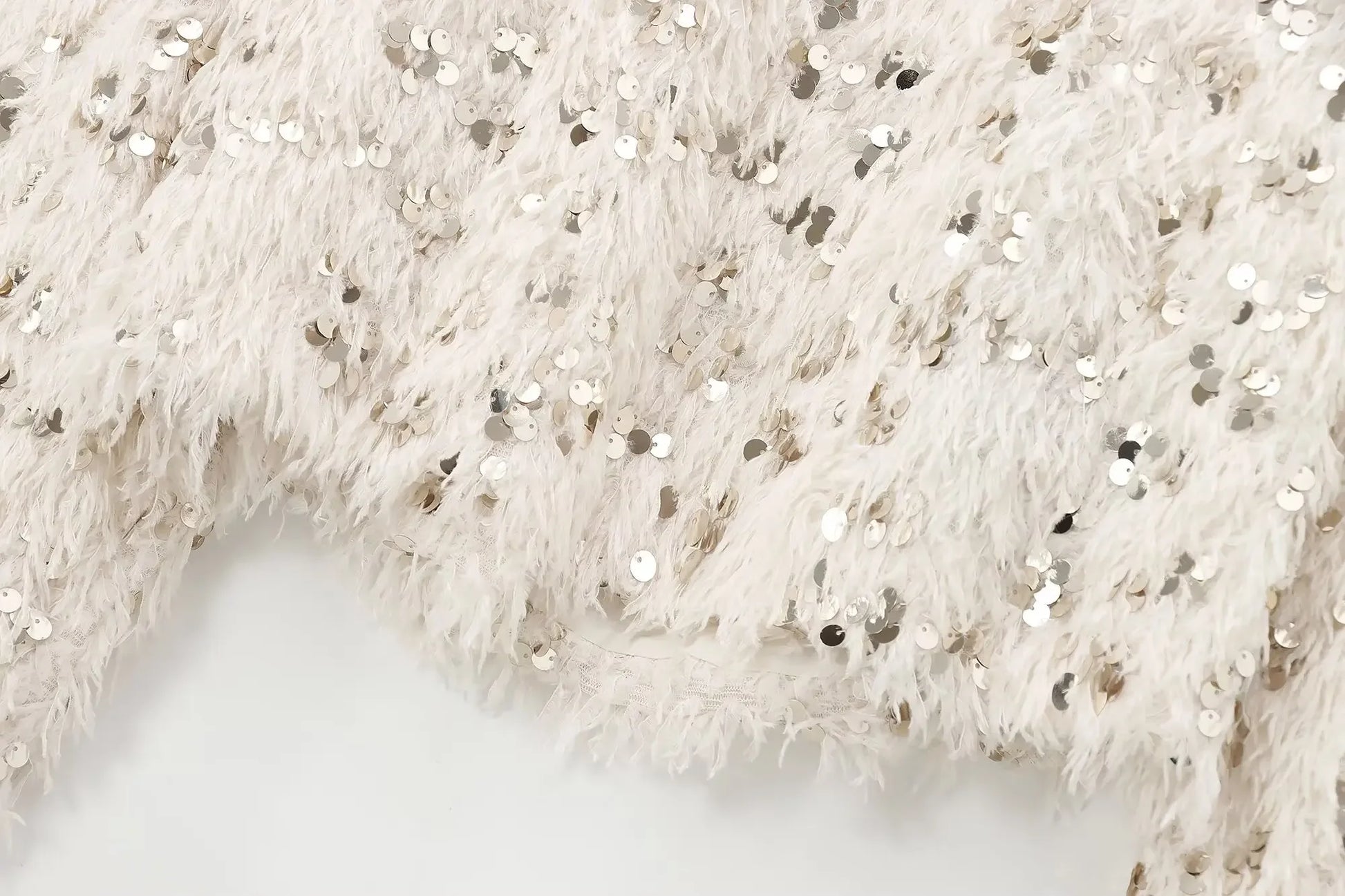 Women's new fashion feather sequin decoration loose casual V Neck knitted sweater retro long sleeved women's pullover chic top