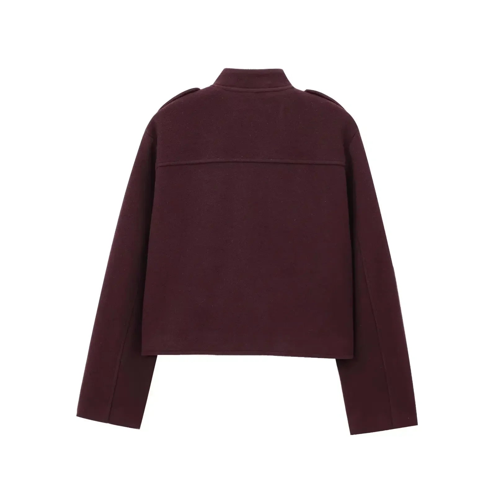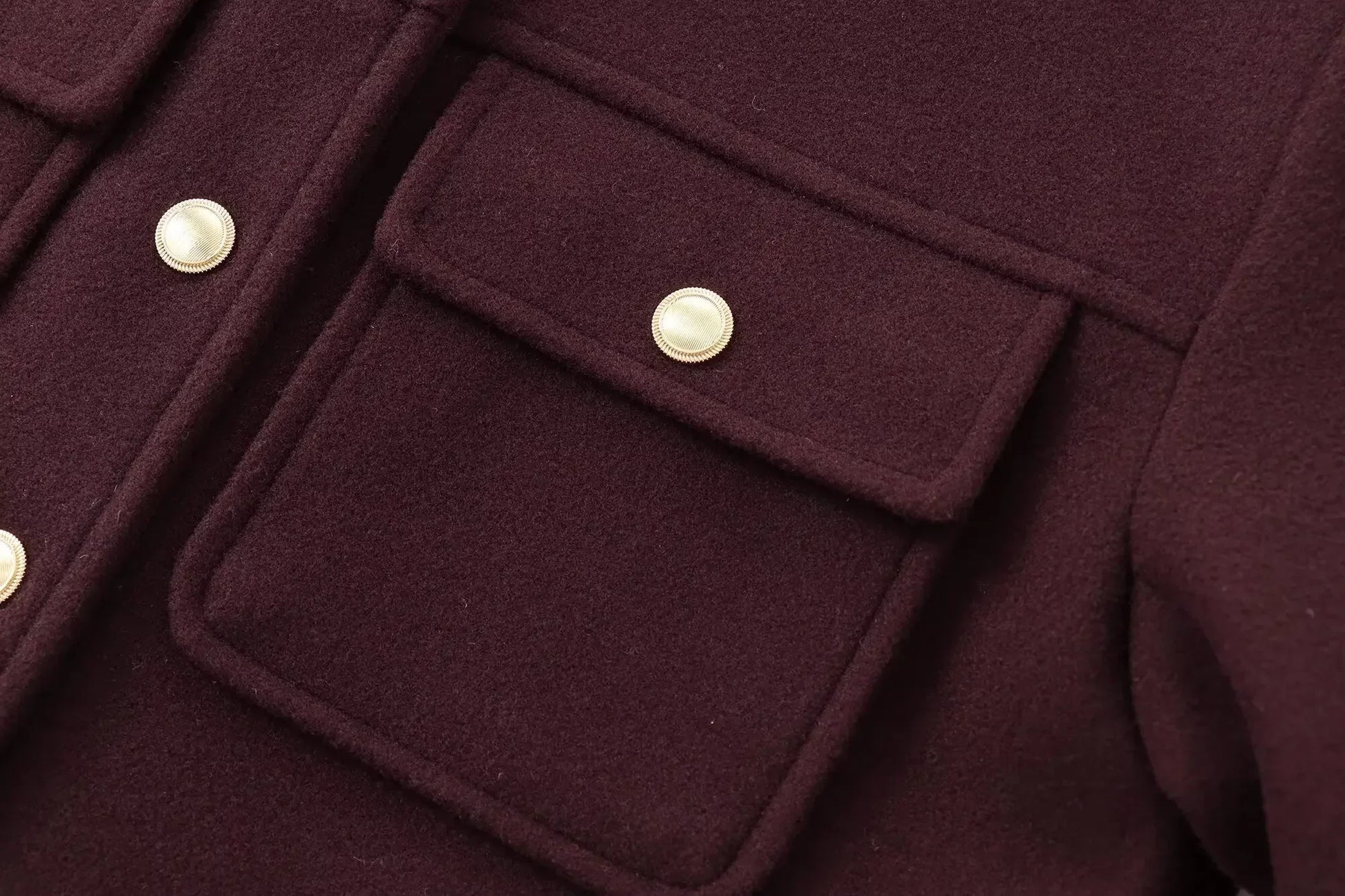 Women's new fashion flap pocket decoration casual soft texture short jacket retro long sleeved button up women's coat chic top