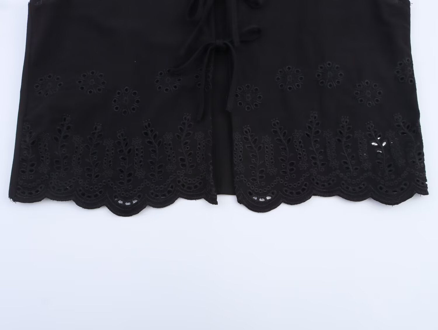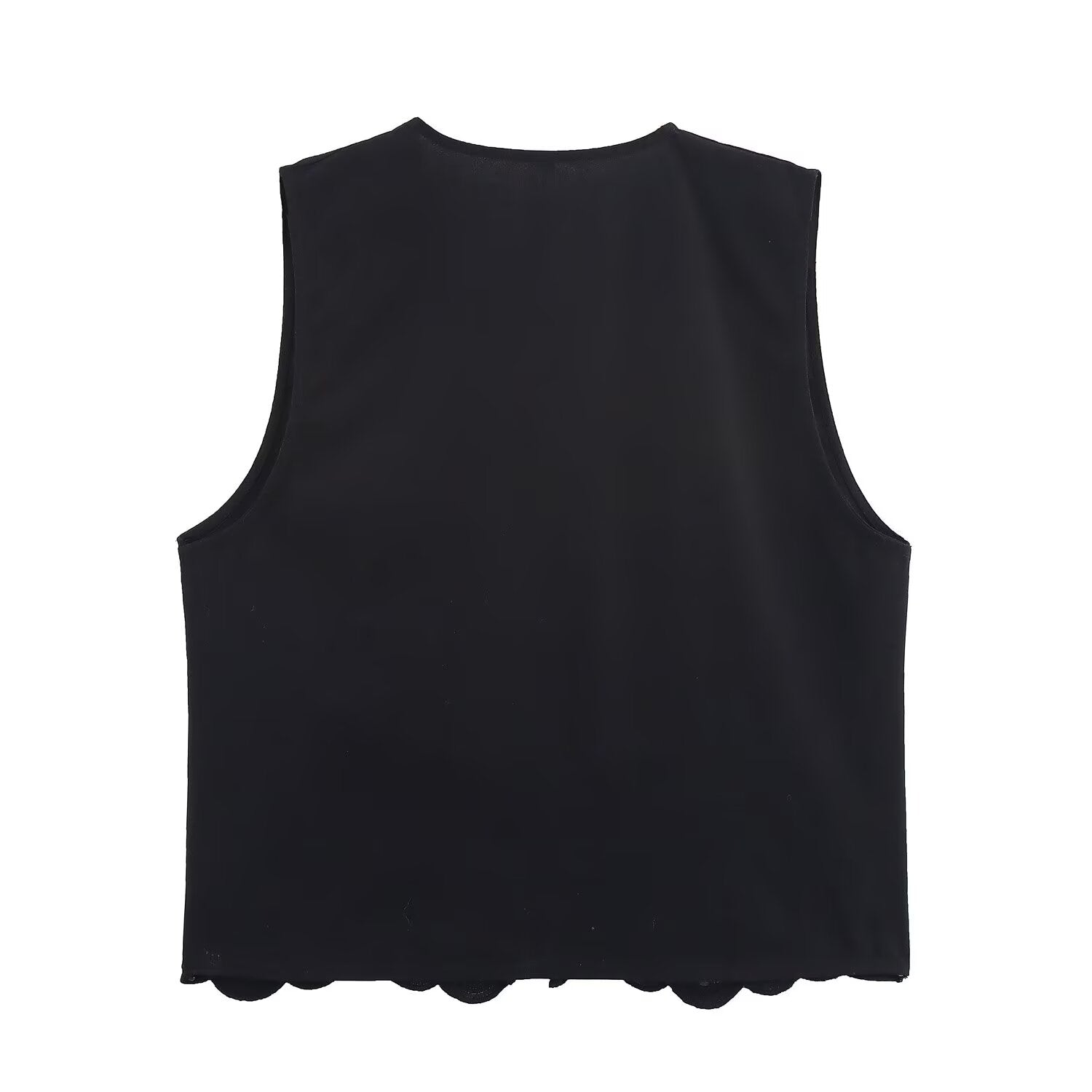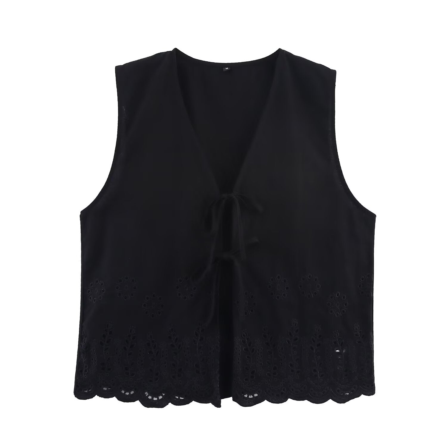 Women's new fashion hollow embroidery linen blended V-neck vest