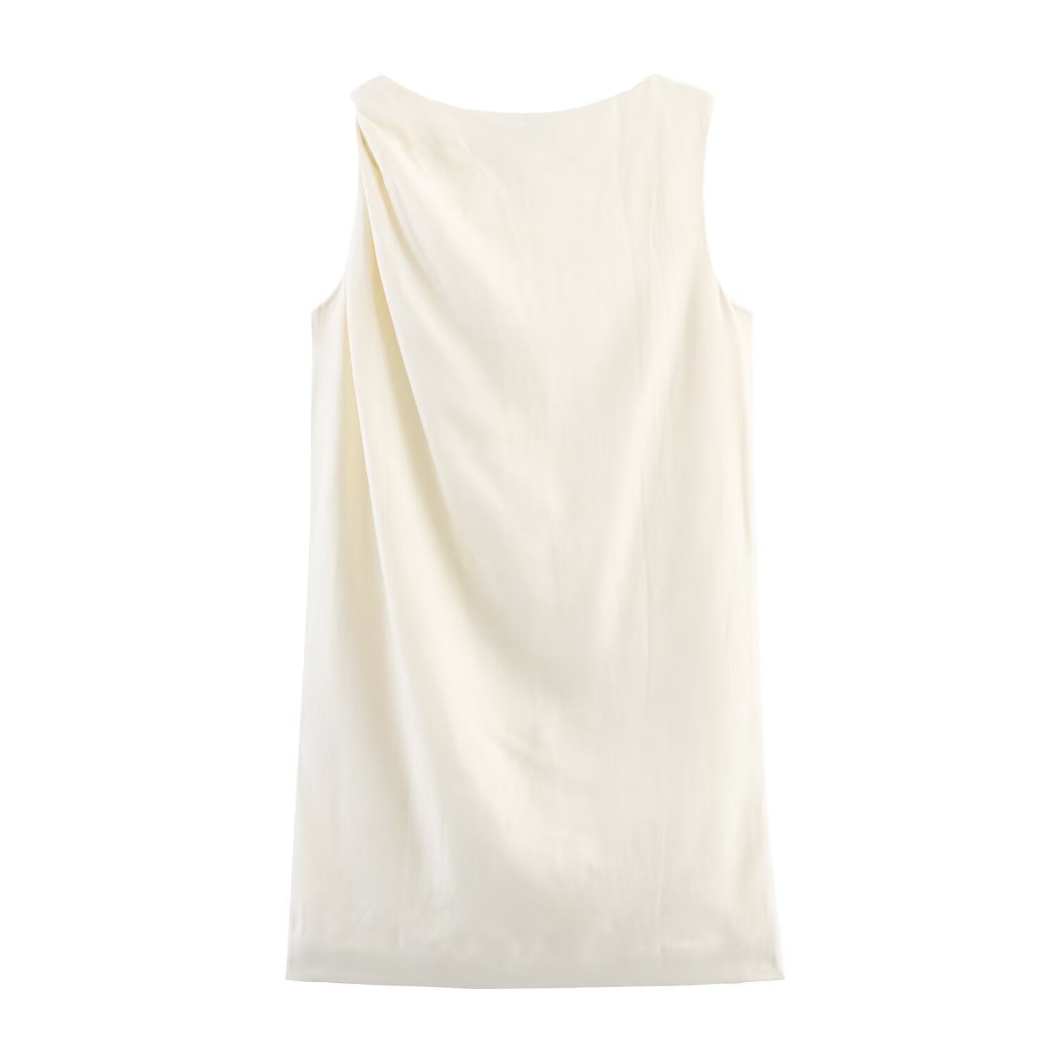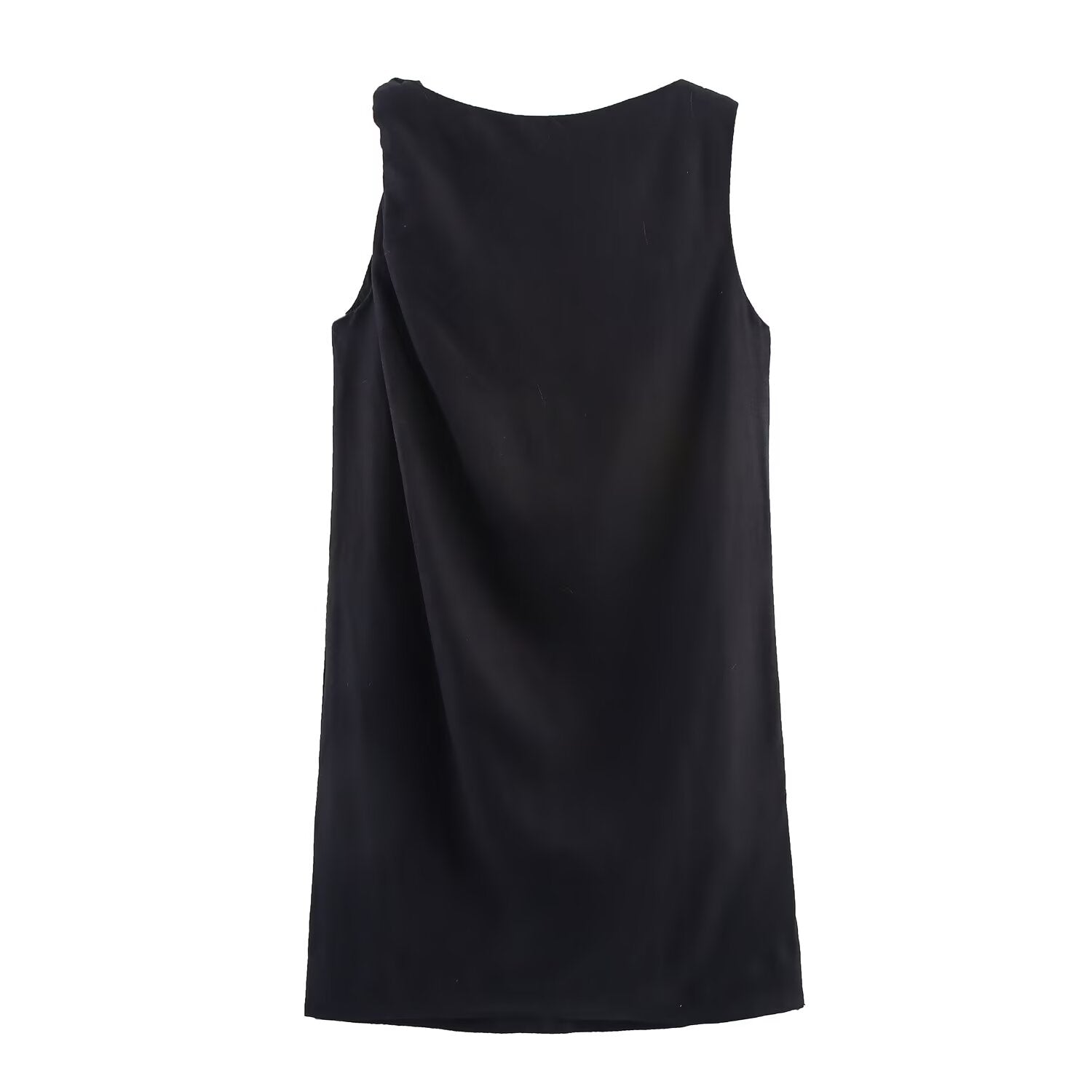 Women's new fashion knot decoration sleeveless linen blend mini dress