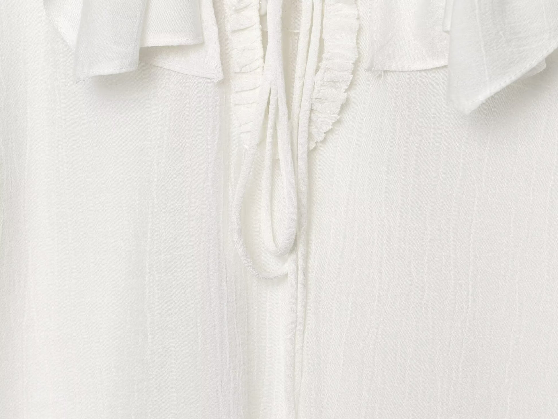 Women's new fashion layered decoration loose V-neck lace up long sleeved shirt