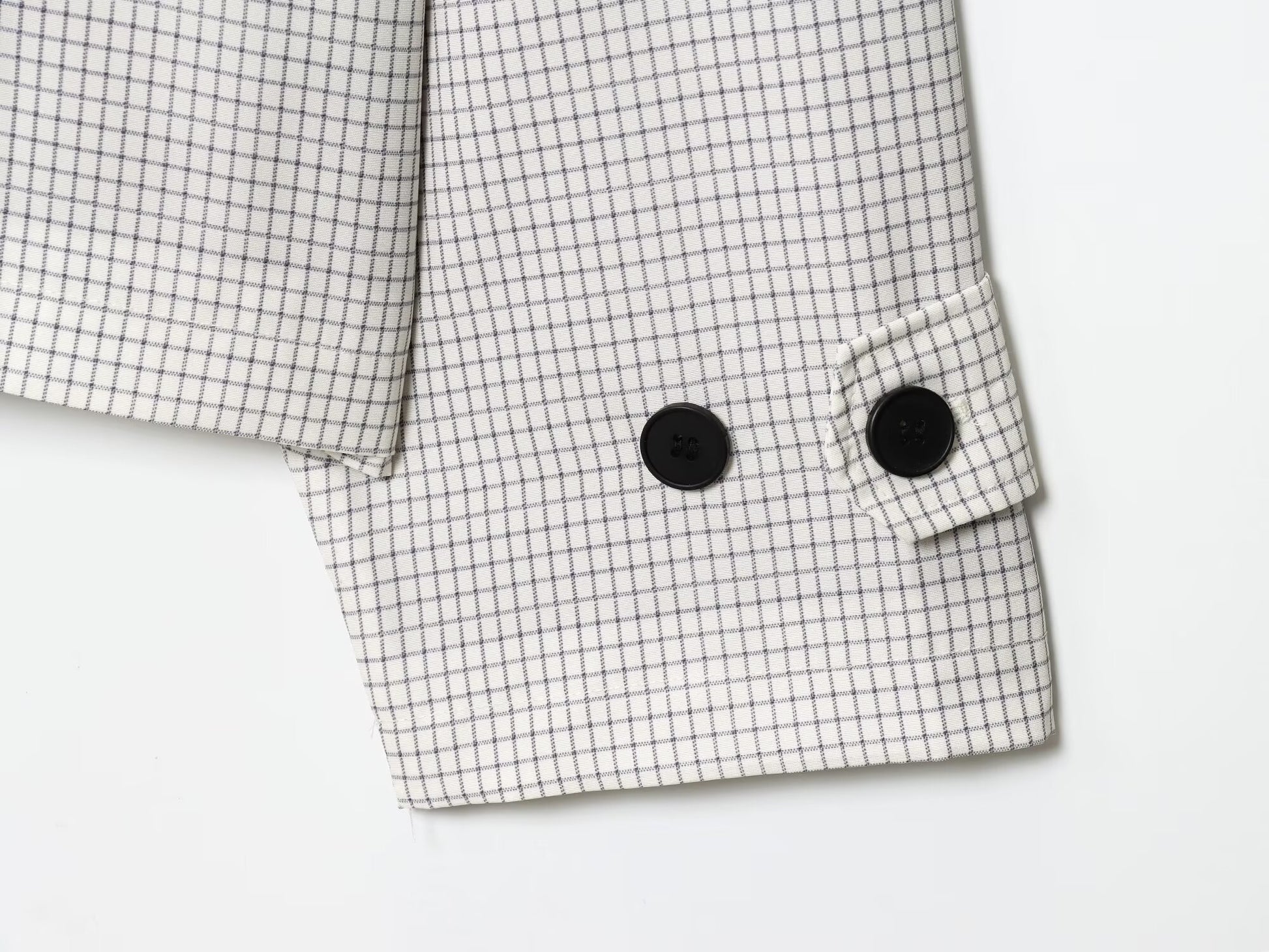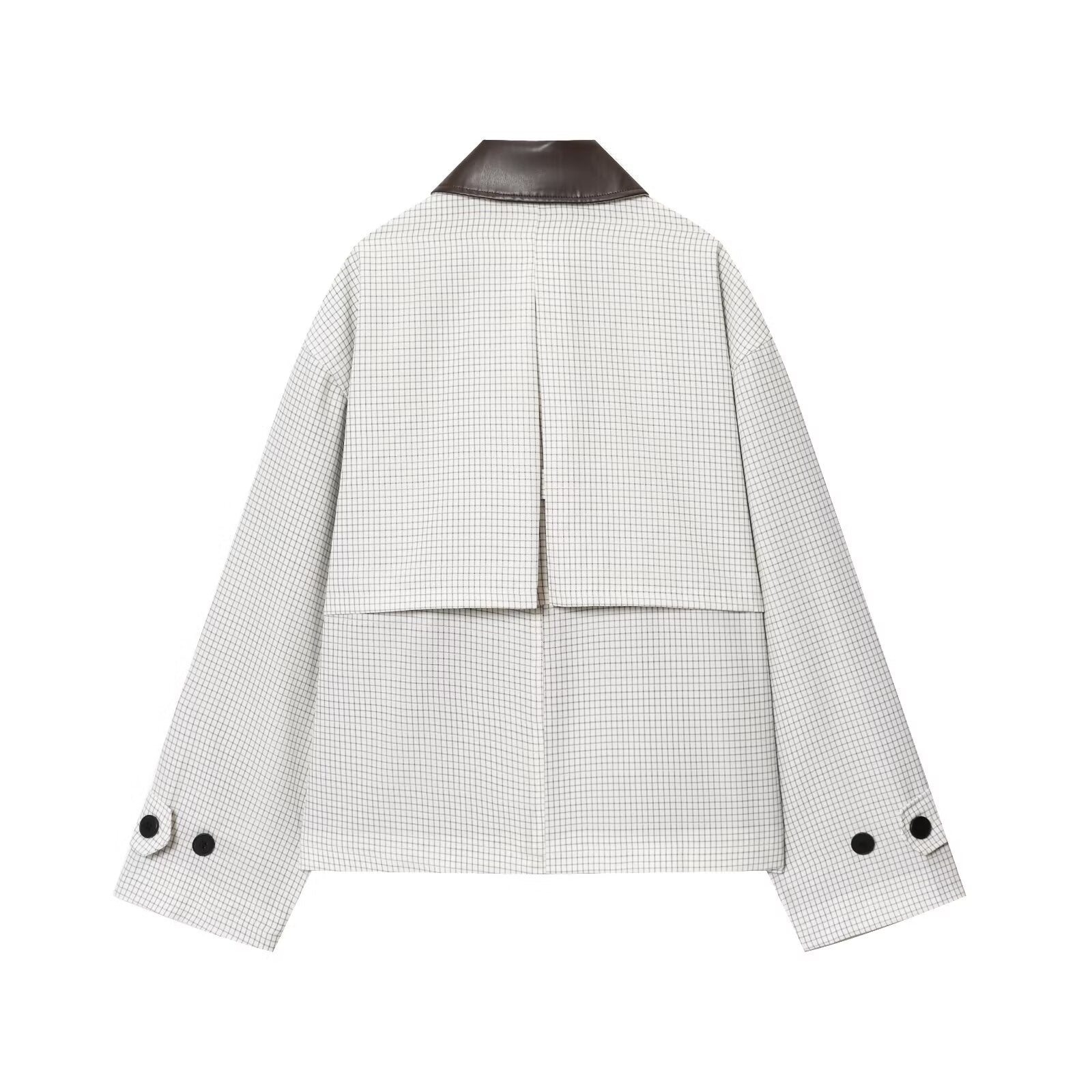 Women's new fashion leather collar design short plaid Windbreaker coat