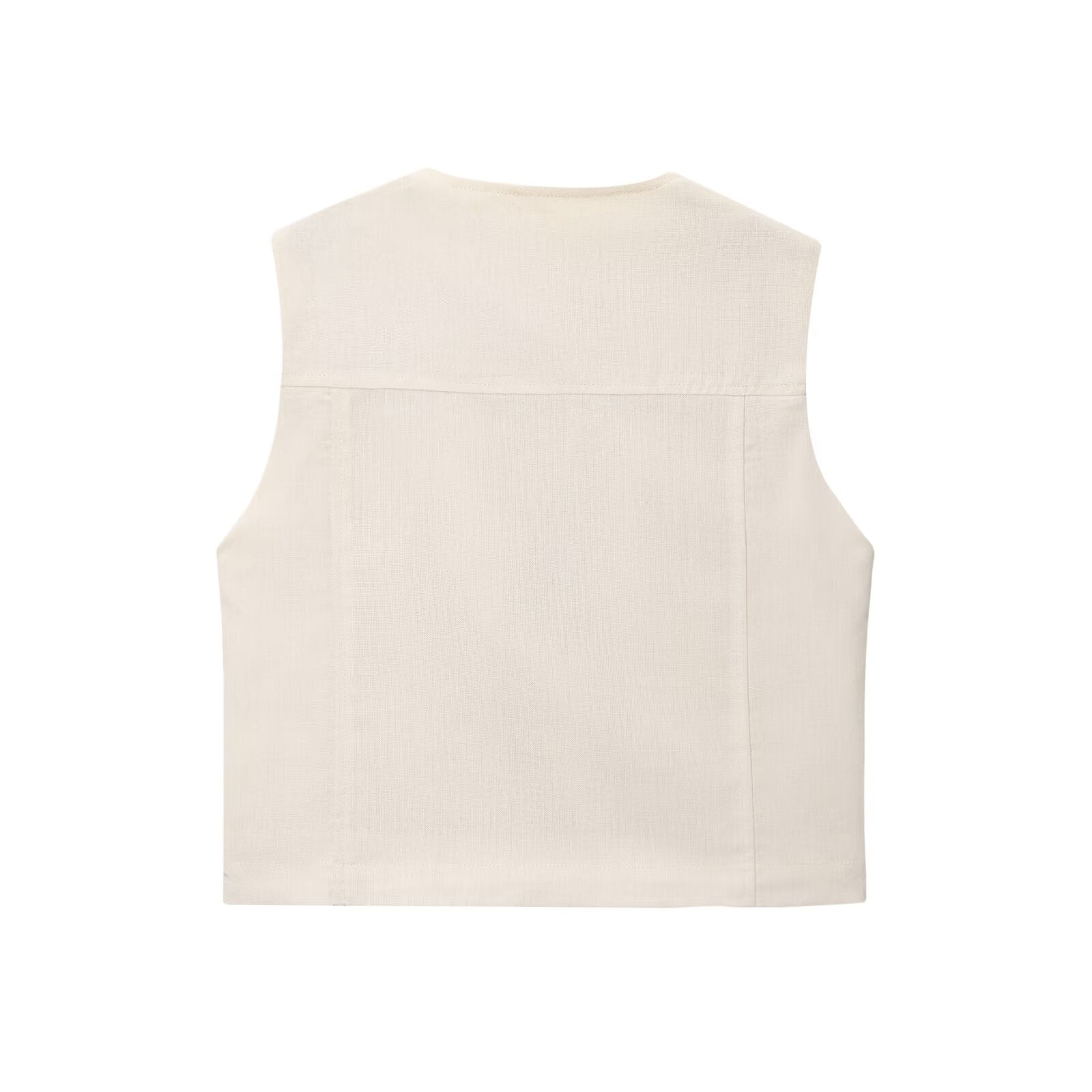 Women's new fashion linen blend double breasted sleeveless vest+Shorts suit