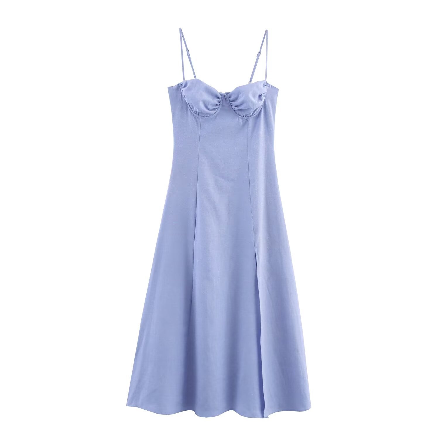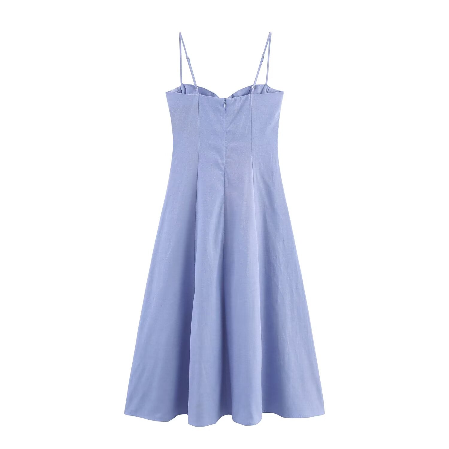 Women's new fashion linen blend tight corset style suspender MIDI dress