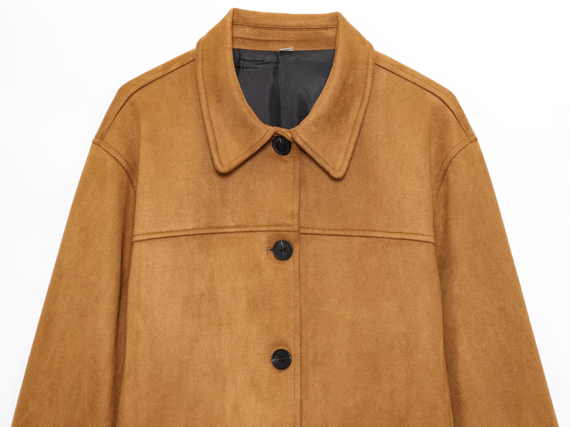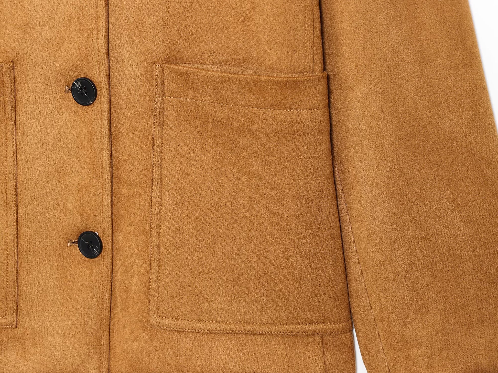 Women's new fashion loose long sleeved suede leather jacket Coat