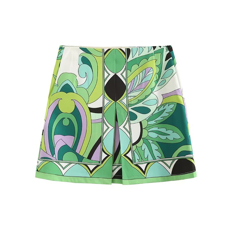 Women's new fashion loose single breasted printed long sleeved shirt+Skirt suit