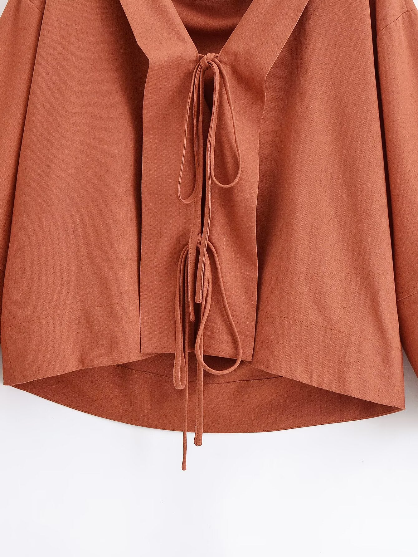 Women's New Fashion Loose Two Wear Hemp Blended Lace up Shirt