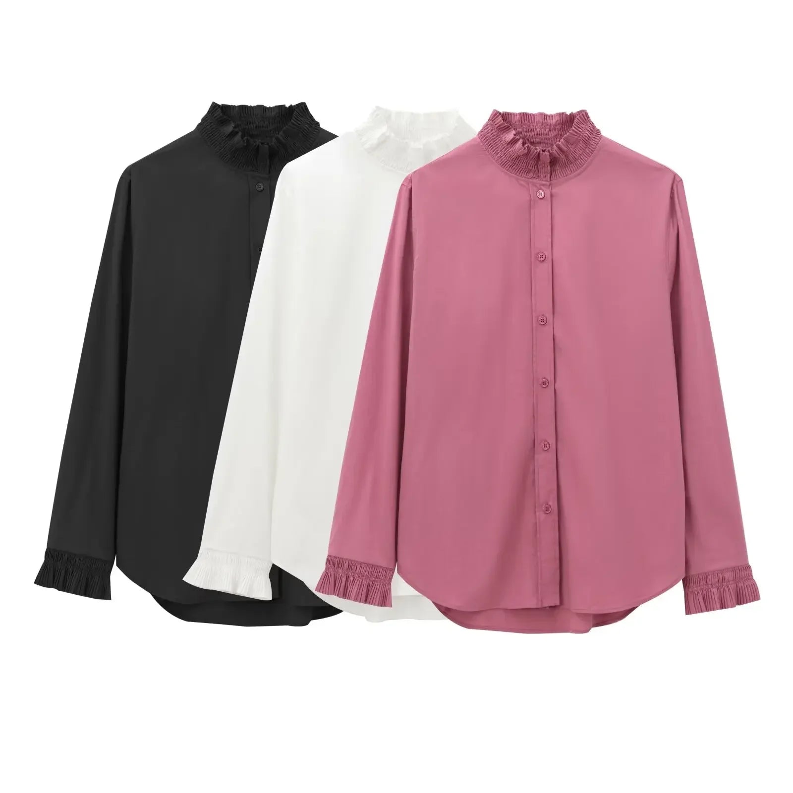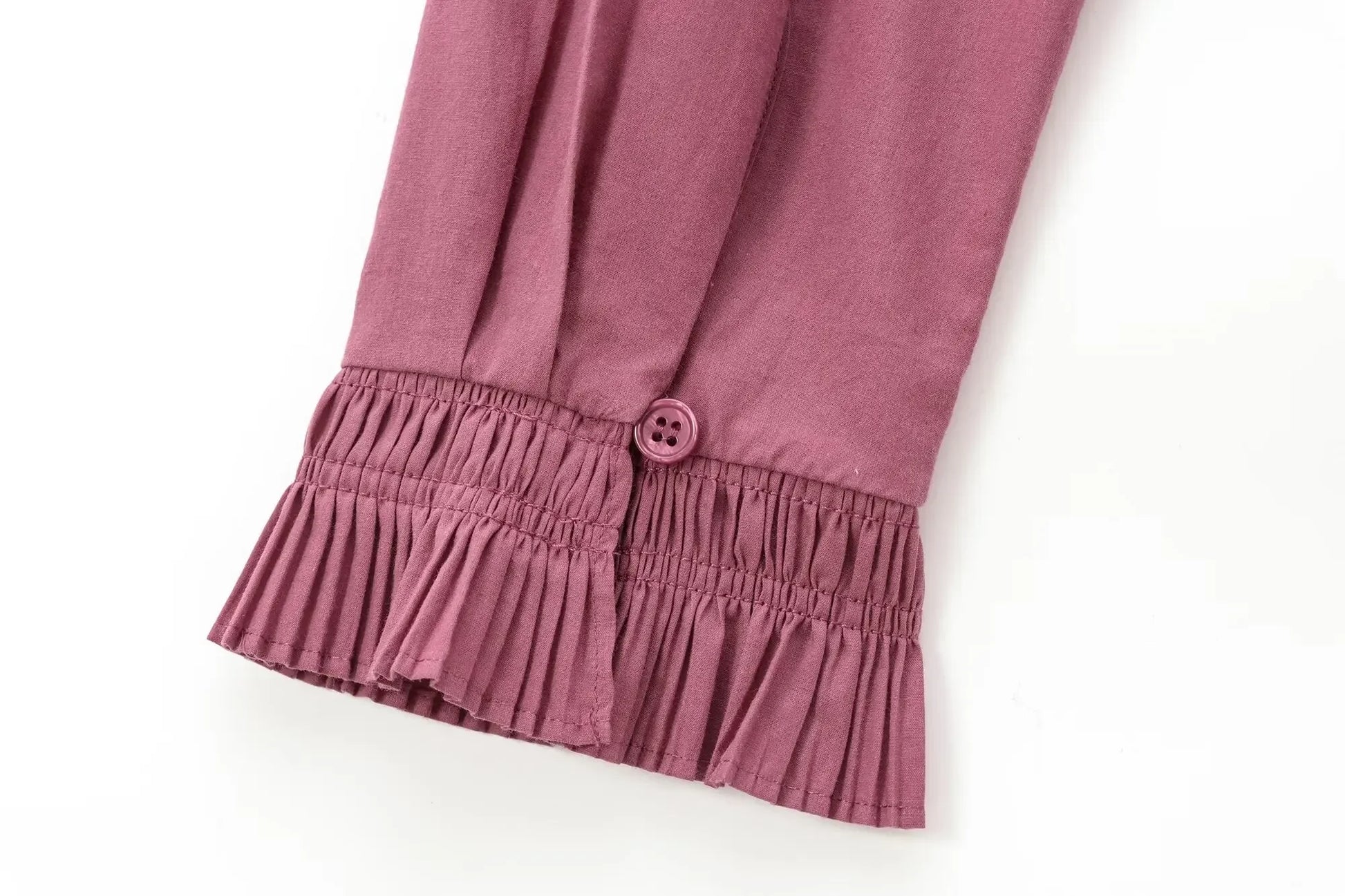 Women's new fashion pleated layered decoration casual single breasted solid shirt retro long sleeved women's shirt chic top