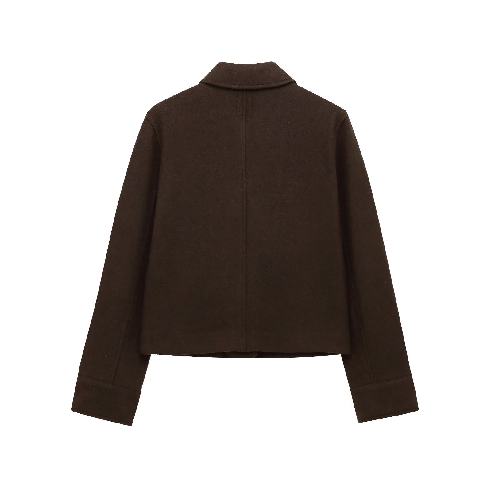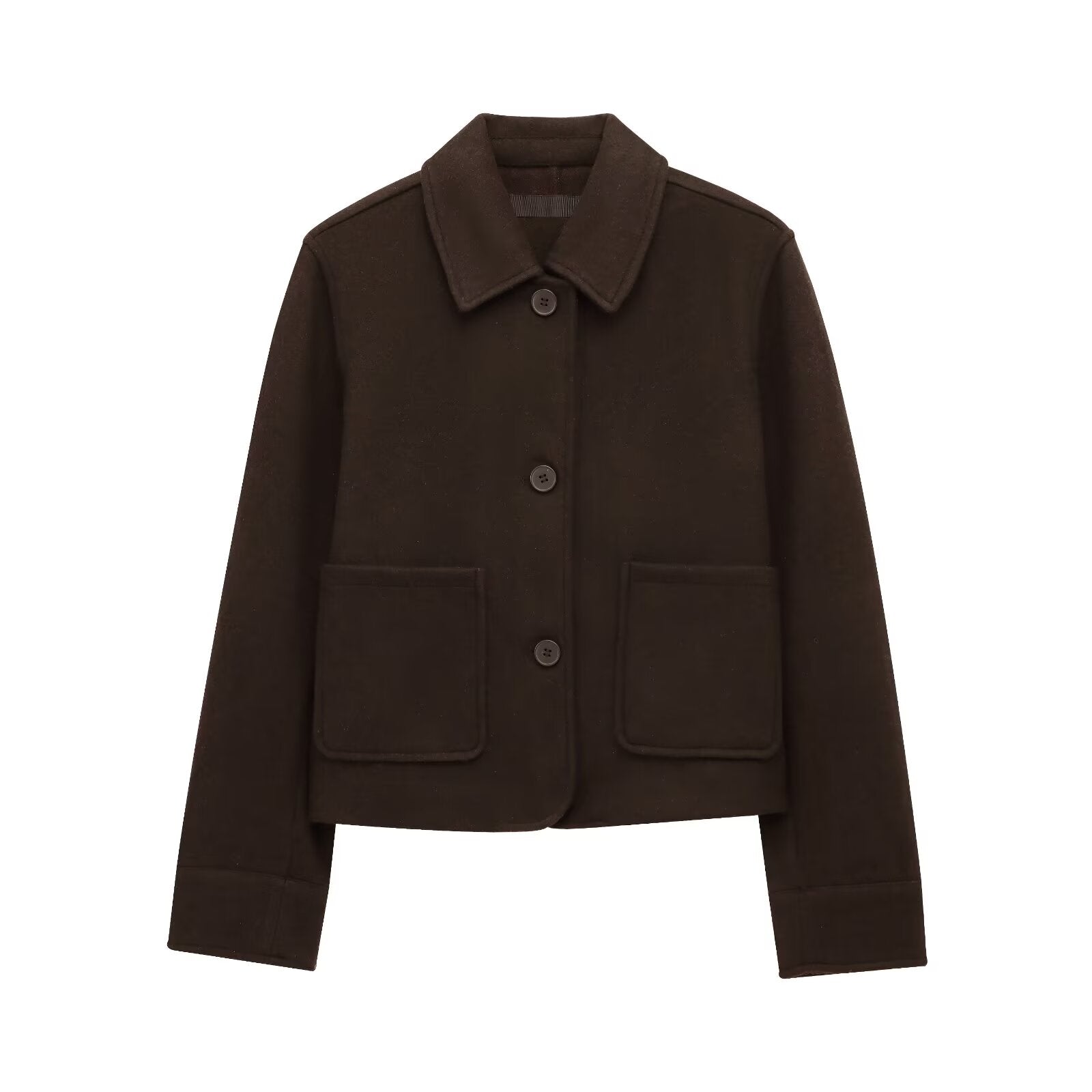 Women's new fashion pocket decoration long sleeved soft texture jacket