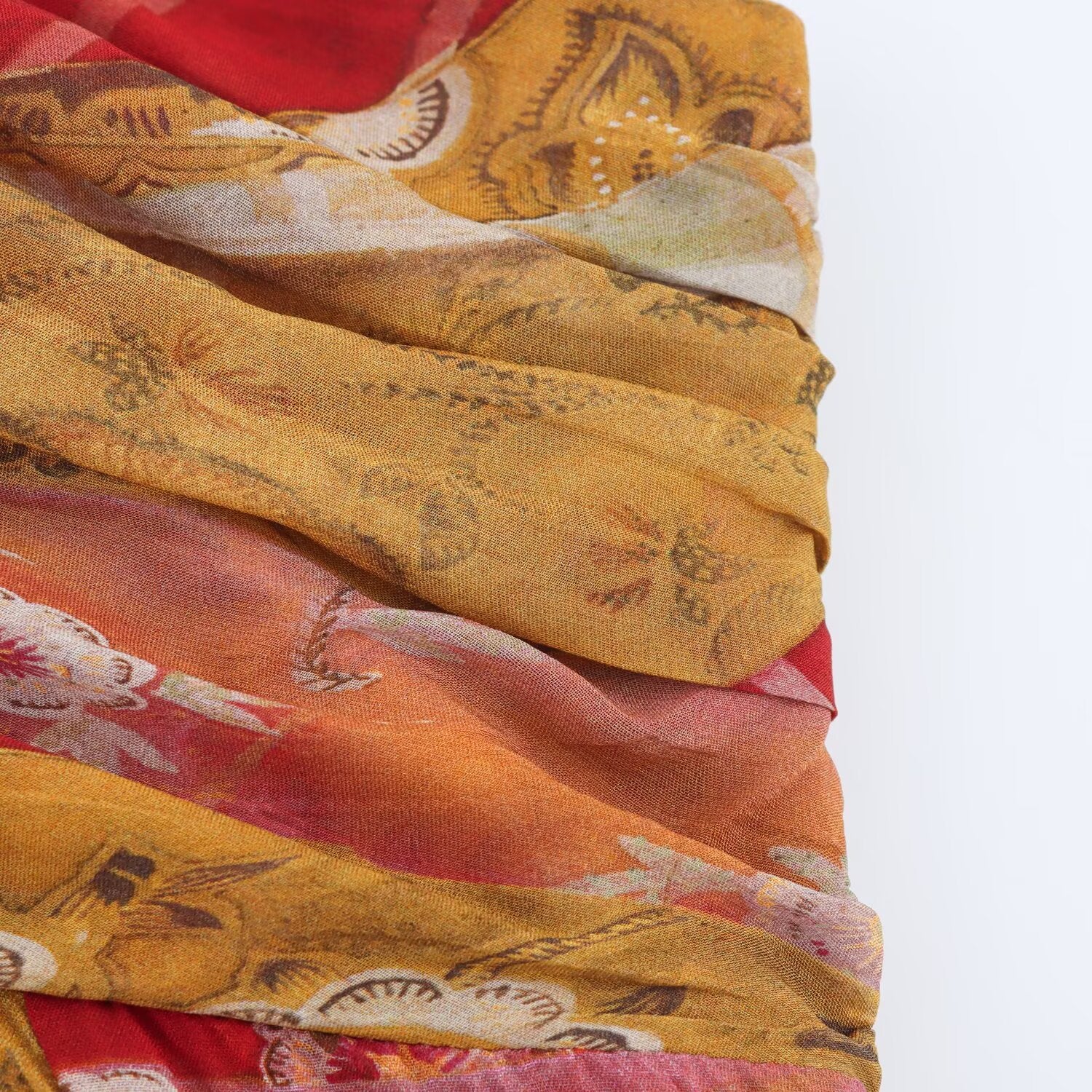 Women's New Fashion Printed Draped Chiffon suspender Midi Dress