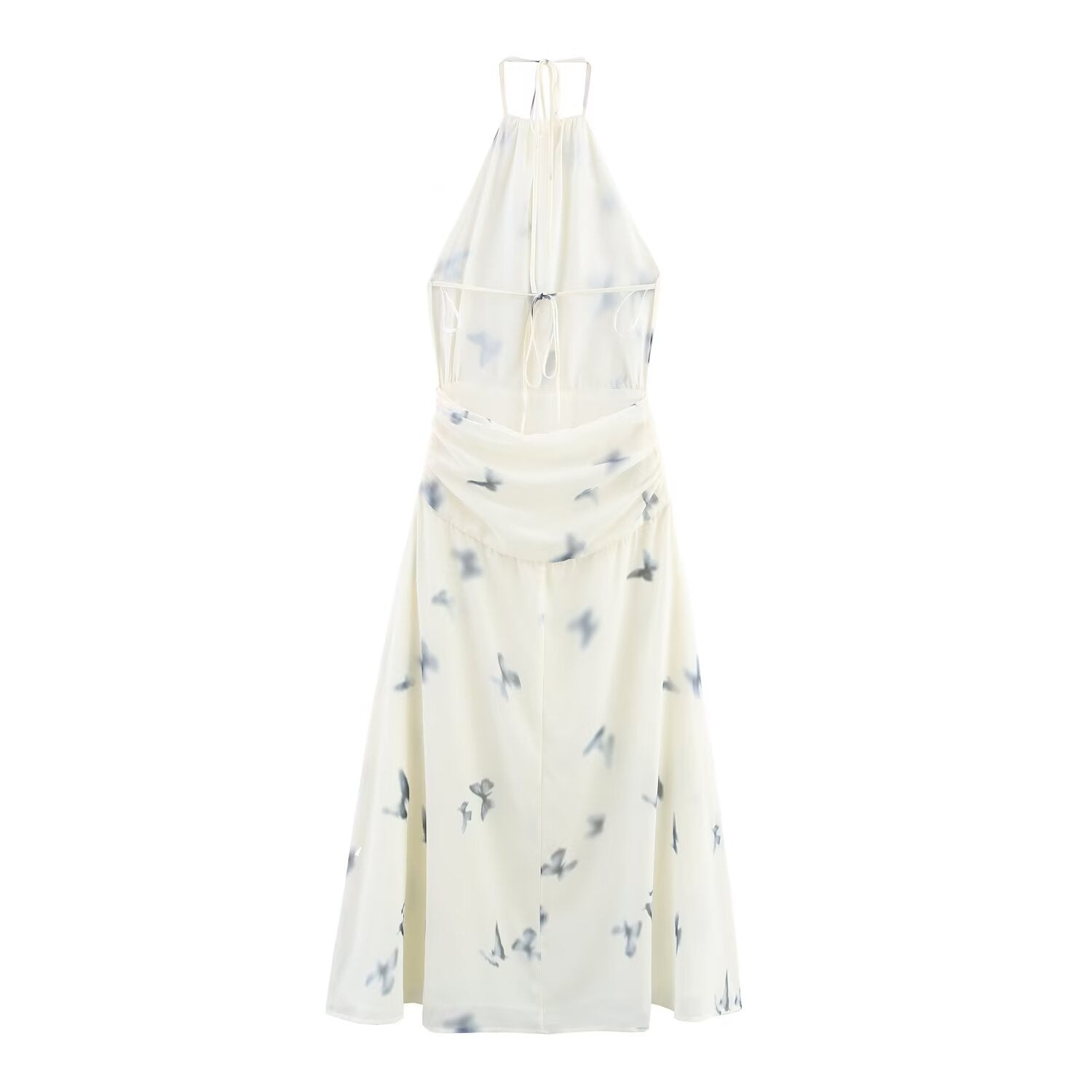 Women's new fashion sexy backless printed hanging neck MIDI dress