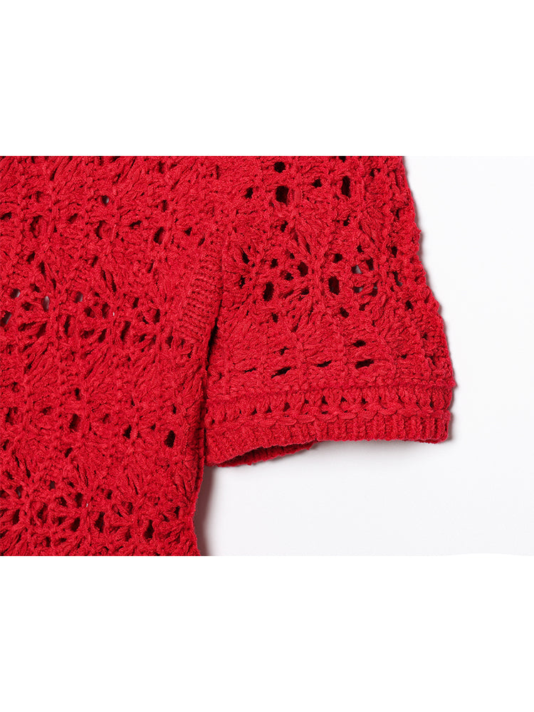 Women's New Fashion Short Single breasted Hollow Knitted Coat