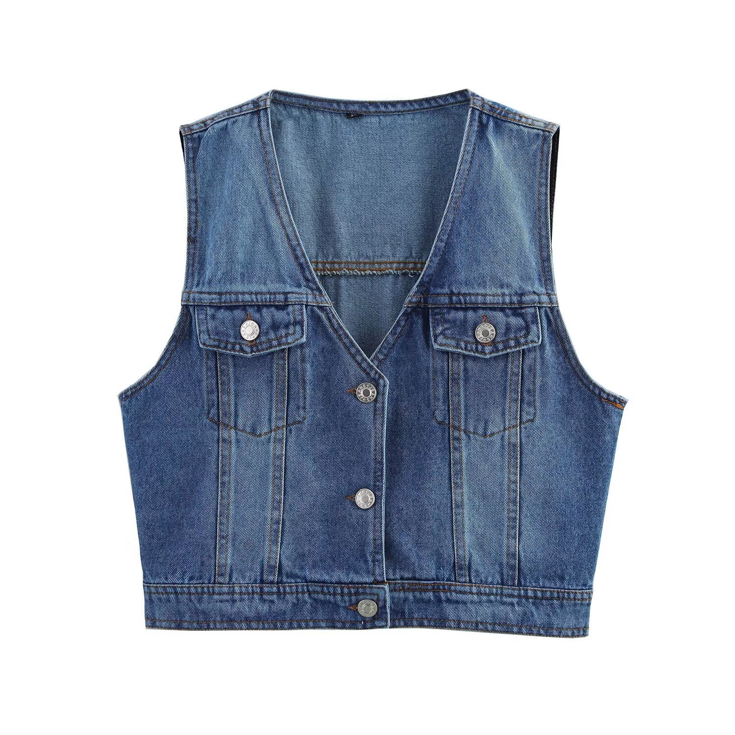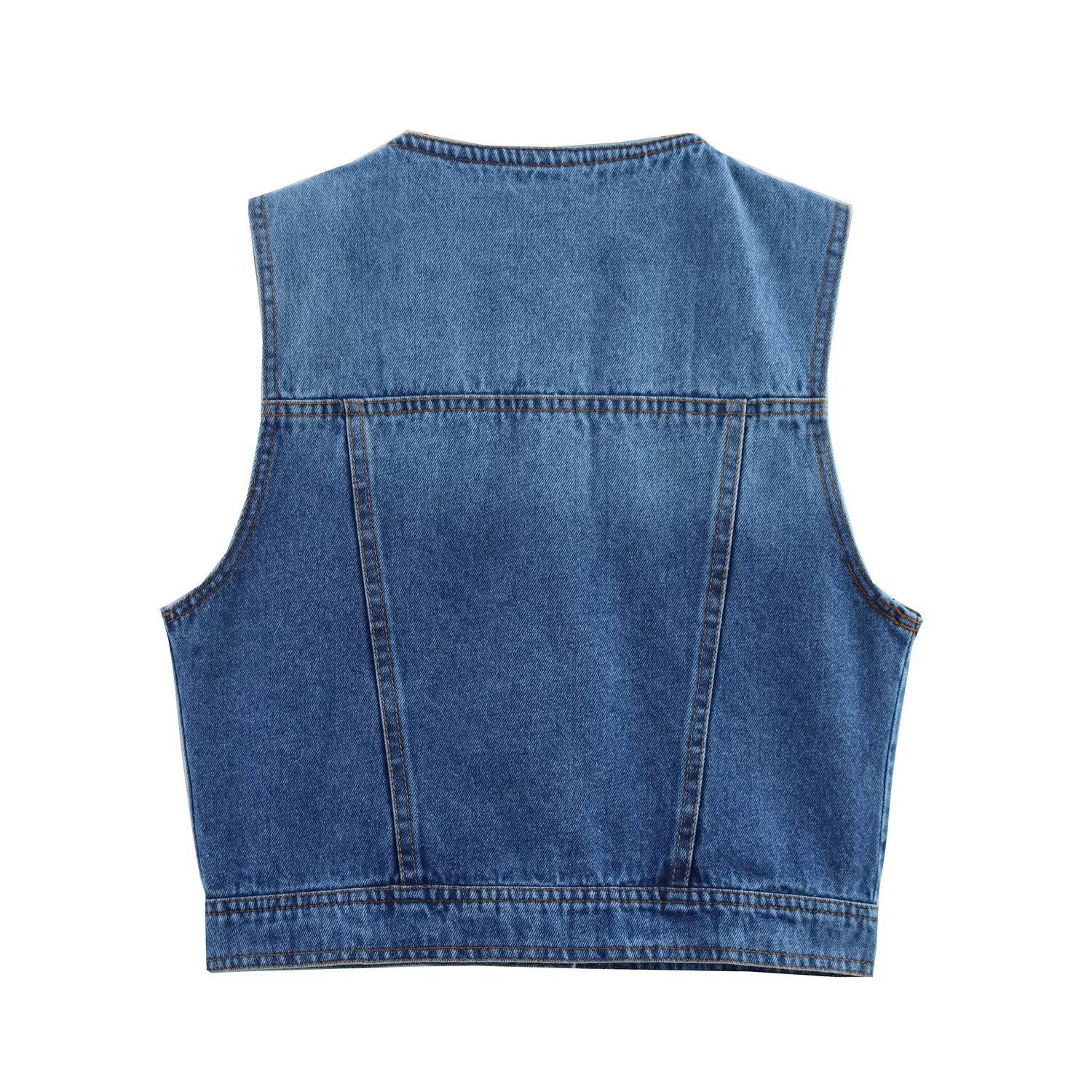 Women's new fashion short single breasted V-neck denim vest+Jeans Women's suit