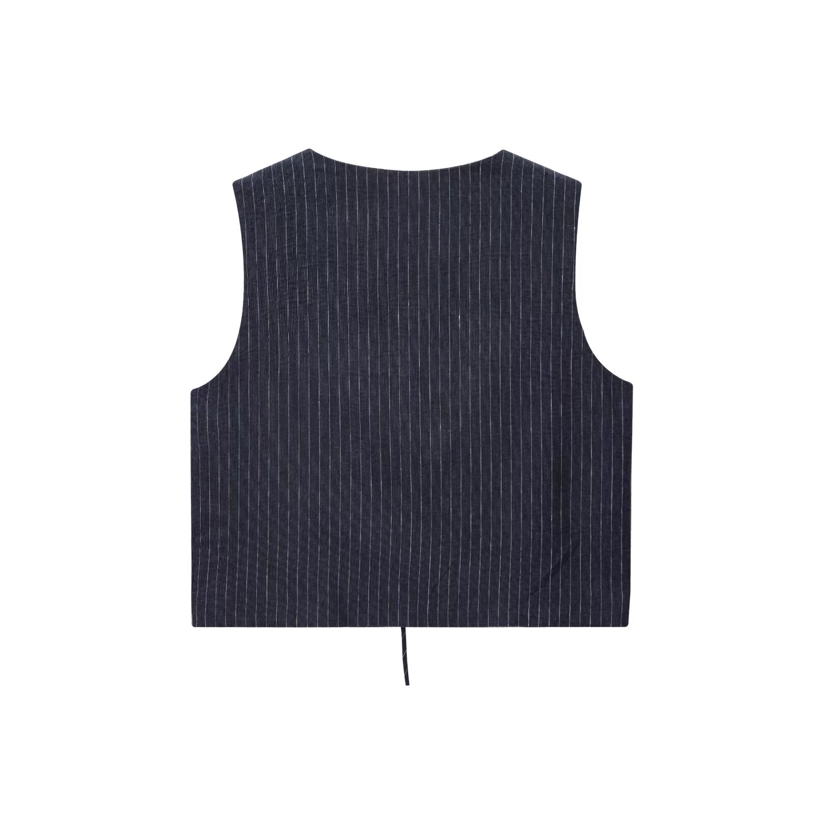 Women's new fashion short striped linen blend V-neck vest+Pants suit