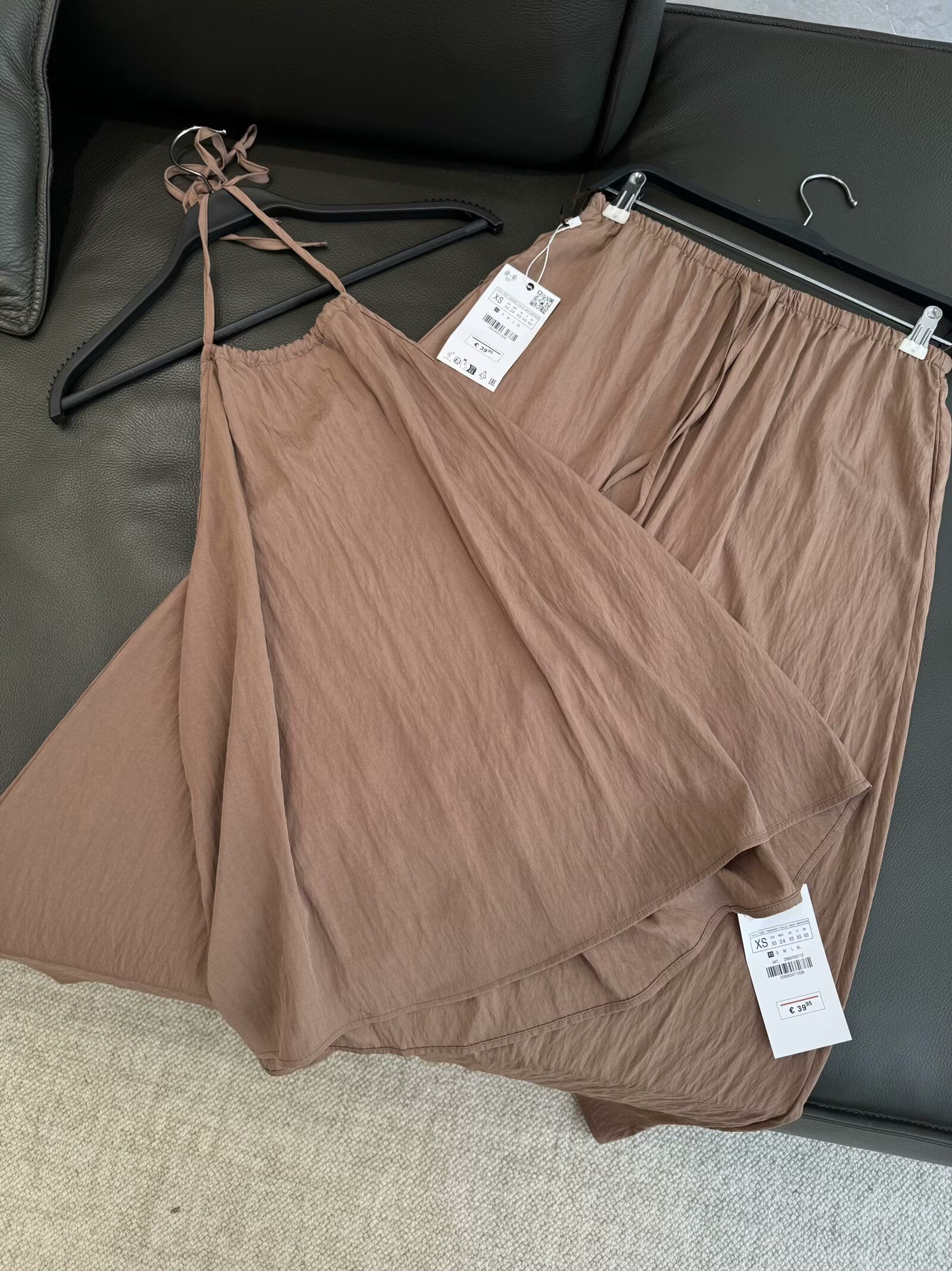 Women's new fashion sleeveless backless halter neck top+Skirts suit